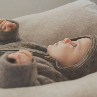 Modal Babystrampler mit Füssen Beige mit Cookieprint von A Tiny Story