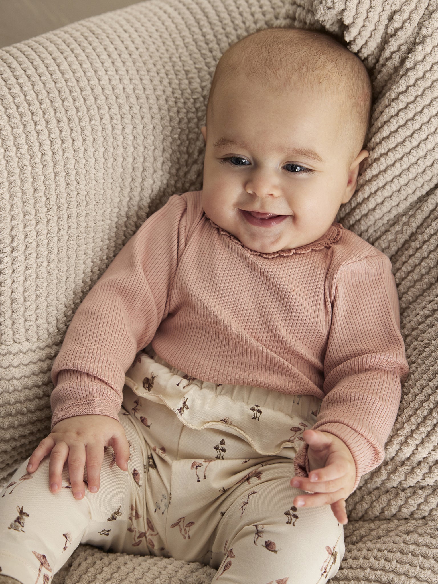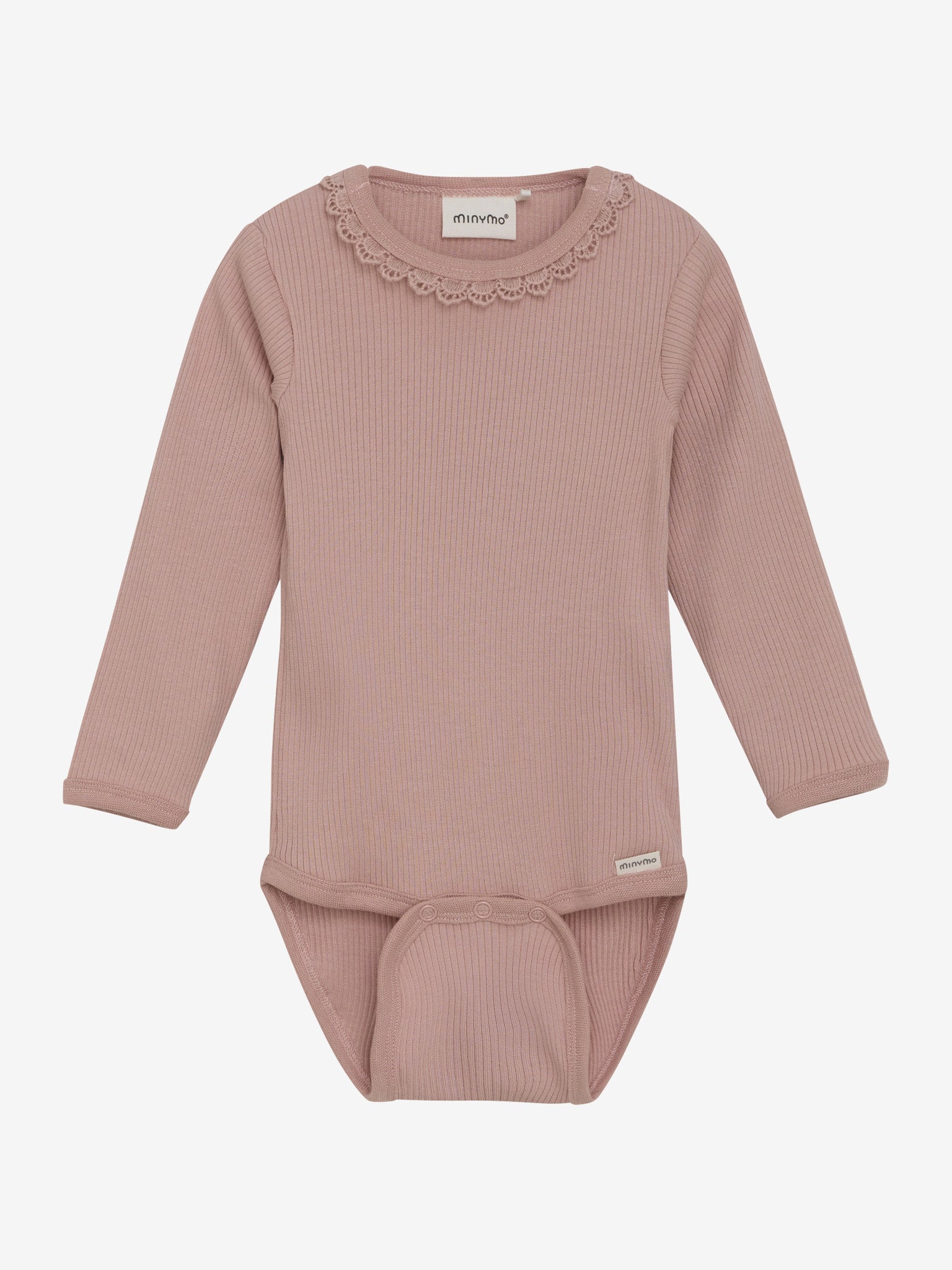 Der superweiche Langarm-Body von Minymo hat auf den Schultern Druckknöpfe, um das An- und Ausziehen zu erleichtern. Die Druckknöpfe zwischen den Beinen helfen, das Wickeln zu erleichtern. Der Body hat einen hübschen gehäkelten Rundhalsausschnitt und ist aus Baumwolle und TENCEL™ Modal, diese Fasern werden aus Buchenholz hergestellt. Das heisst, das Material fühlt sich an wie Kunstseide, super weich und sehr angenehm zu tragen. Passend zum weichen Body ist auch die Leggings im gleichen Material und Farbe bei uns erhältlich.