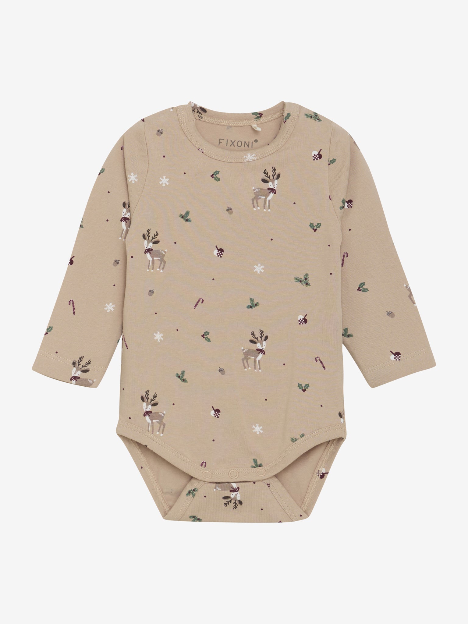 Dieser feine Langarmbody von Fixoni besteht aus Bio-Baumwolle. Der weiche Babybody hat ein süsses Weihnachtsmotiv. Auf der Schulter und im Schritt sind Druckknöpfe, um das An- und Ausziehen sowie das Wickeln zu erleichtern. Passend zum Body sind auch feine Hosen und Leggings von Fixoni bei uns erhältlich.