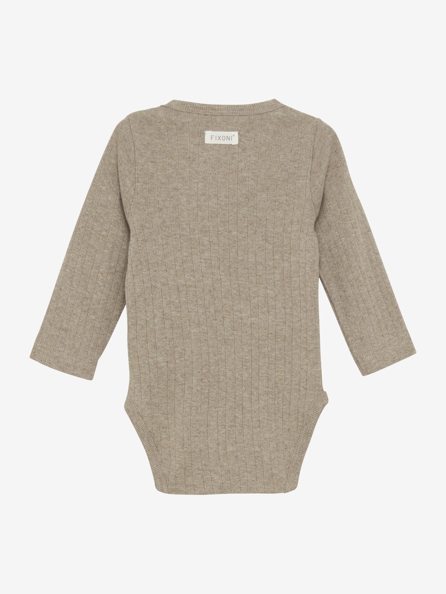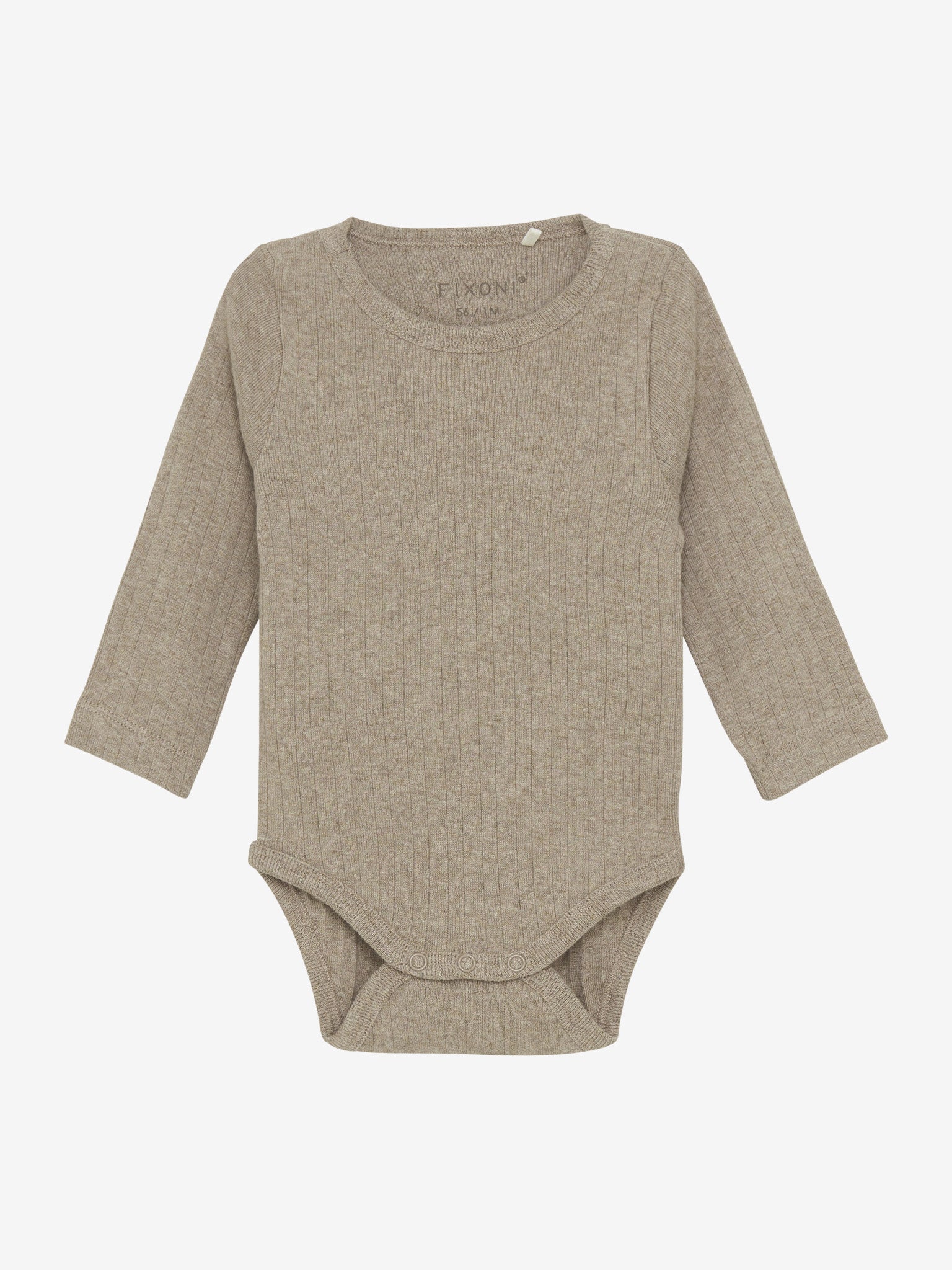 Dieser fein gerippte Langarmbody von Fixoni besteht zu 100% aus Bio-Baumwolle. Der weiche Babybody hat Druckknöpfe auf den Schultern und im Schritt, um das An- und Ausziehen sowie das Wickeln zu erleichtern. Passend zum Body sind auch fein gerippte Leggings in der gleichen Farbe von Fixoni bei uns erhältlich.