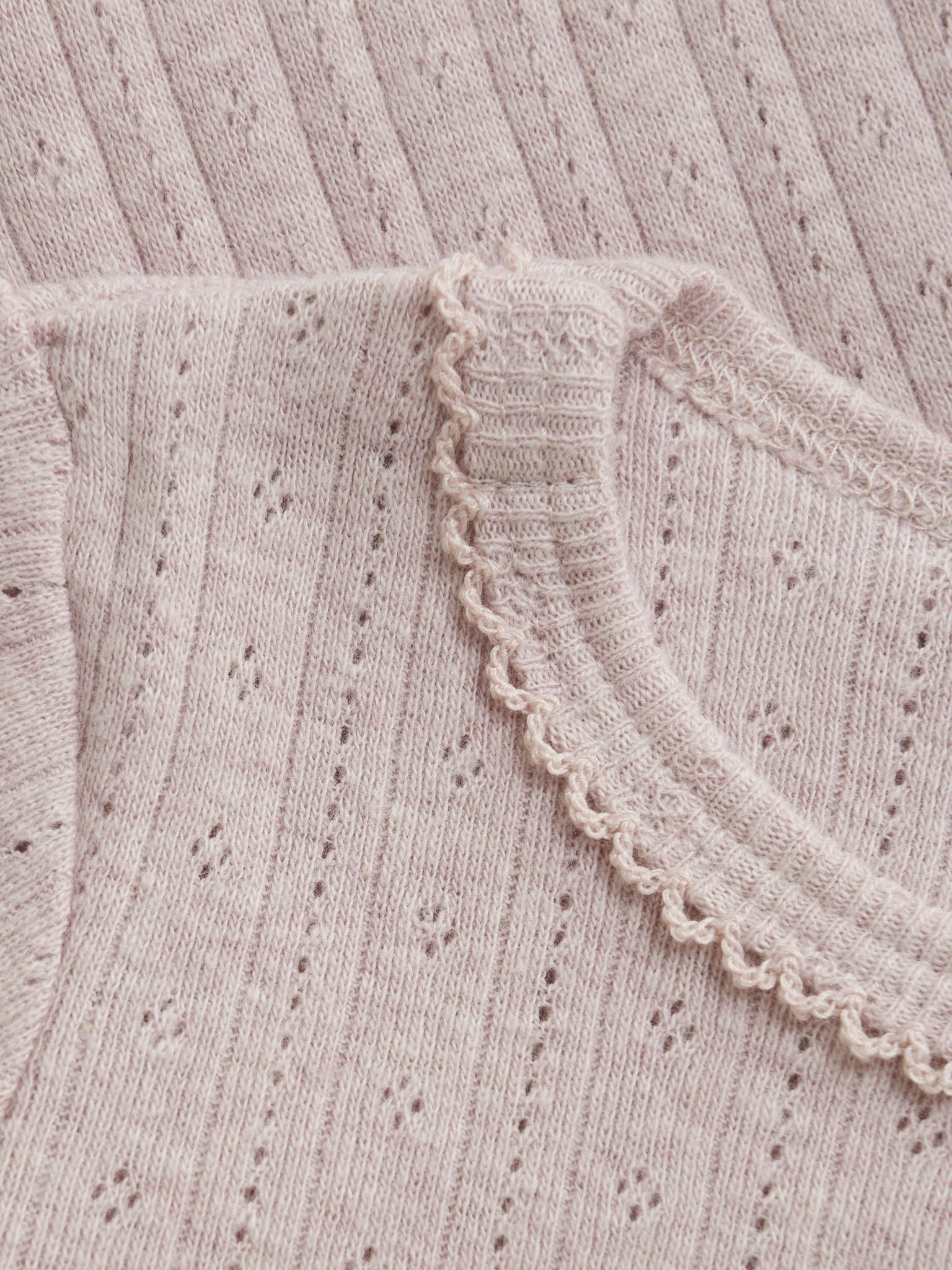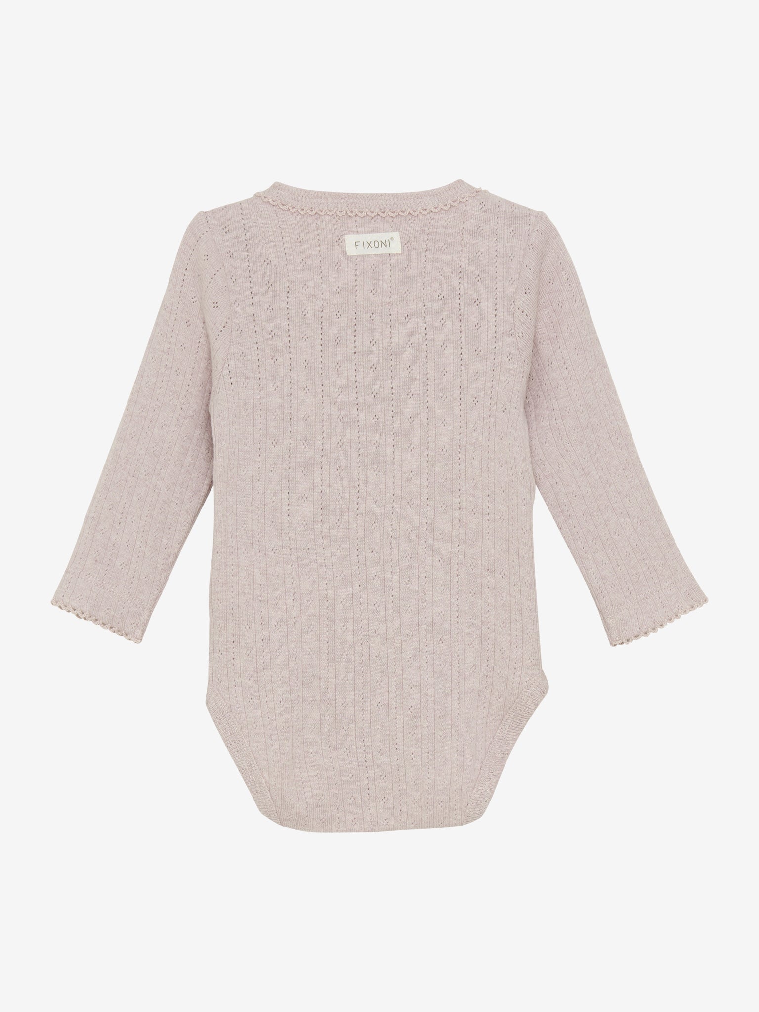 Dieser fein gerippte Langarmbody von Fixoni besteht zu 100% aus Bio-Baumwolle und hat ein schönes Lochmuster. Der weiche Babybody hat Druckknöpfe auf den Schultern und im Schritt, um das An- und Ausziehen sowie das Wickeln zu erleichtern. Passend zum Body sind auch fein gerippte Leggings in der gleichen Farbe von Fixoni bei uns erhältlich.