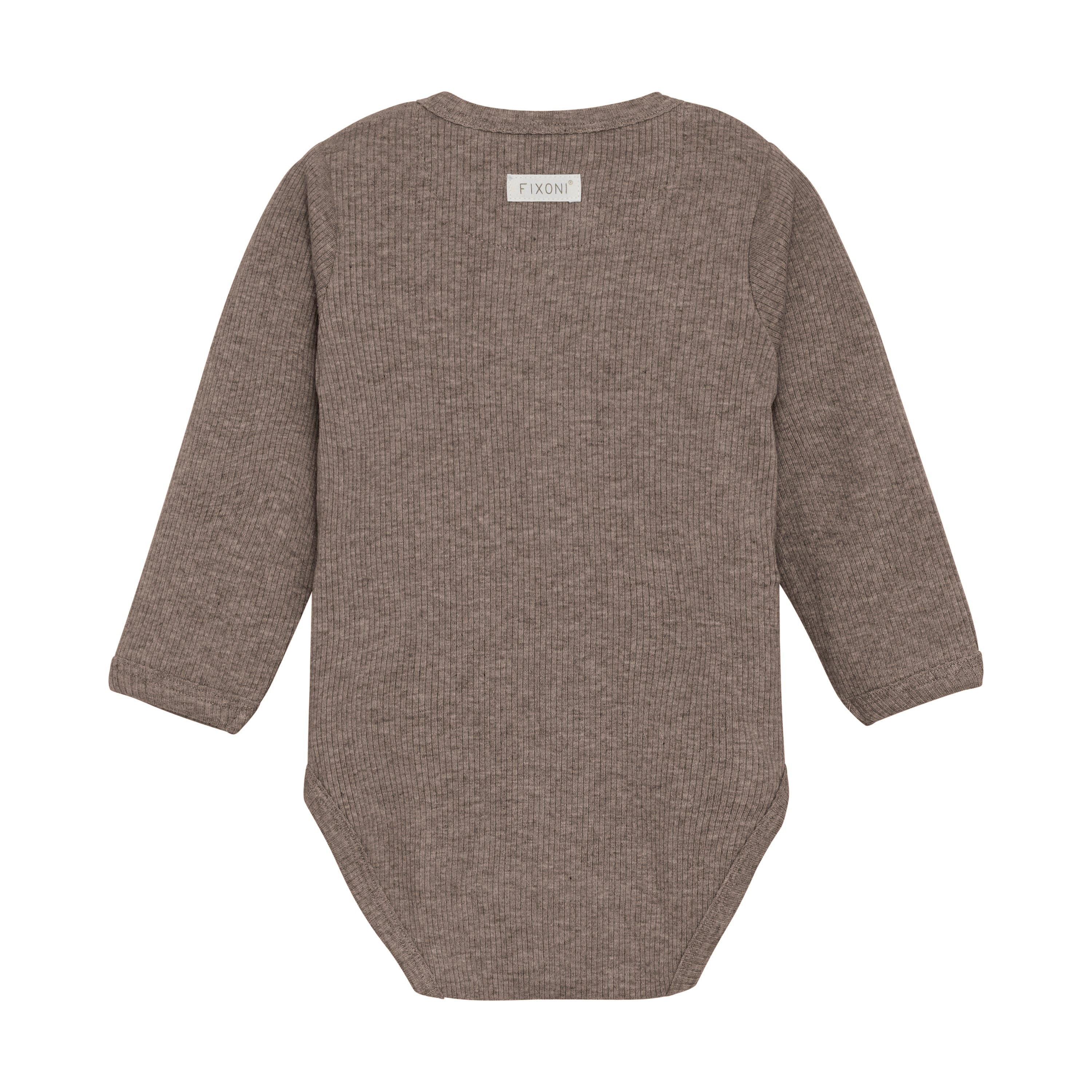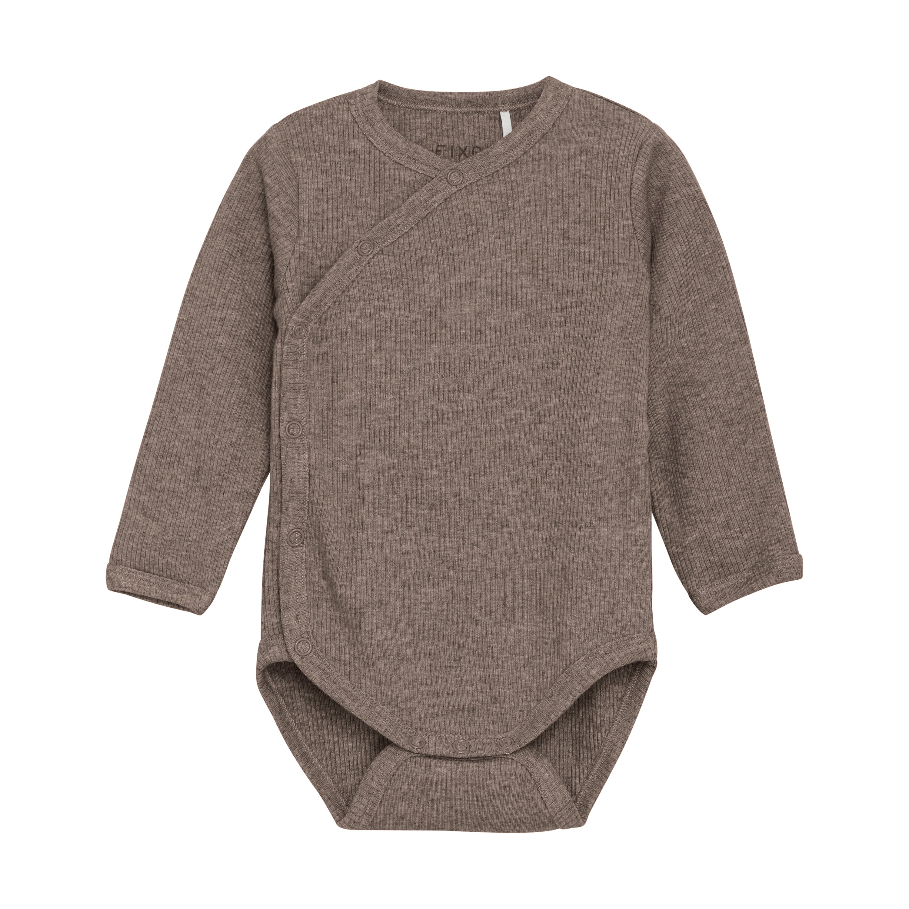 Der gerippte Wickelbody mit langen Armen von Fixoni besteht aus Baumwolle und natürlicher Kunstseide, auch TENCEL™ Modal genannt. Der Newbornbody gibt es bereits ab der Grösse 44, welche für Frühchen optimal ist. Dank der super soften Qualität, wird der Body sehr gerne täglich getragen. Der Body ist durch seine Schlichtheit ideal für die Grundausstattung, die Farbe ist ein schön meliertes Braun und lässt sich optimal mit anderen Farben kombinieren. Der Babybody wird quer vom Hals bis in den Schritt mit Druckknöpfen verschlossen. Die Druckknöpfe im Schritt, vereinfachen das Wickeln und dank den Front-Druckknöpfen, muss der Body nicht über den Kopf angezogen werden.