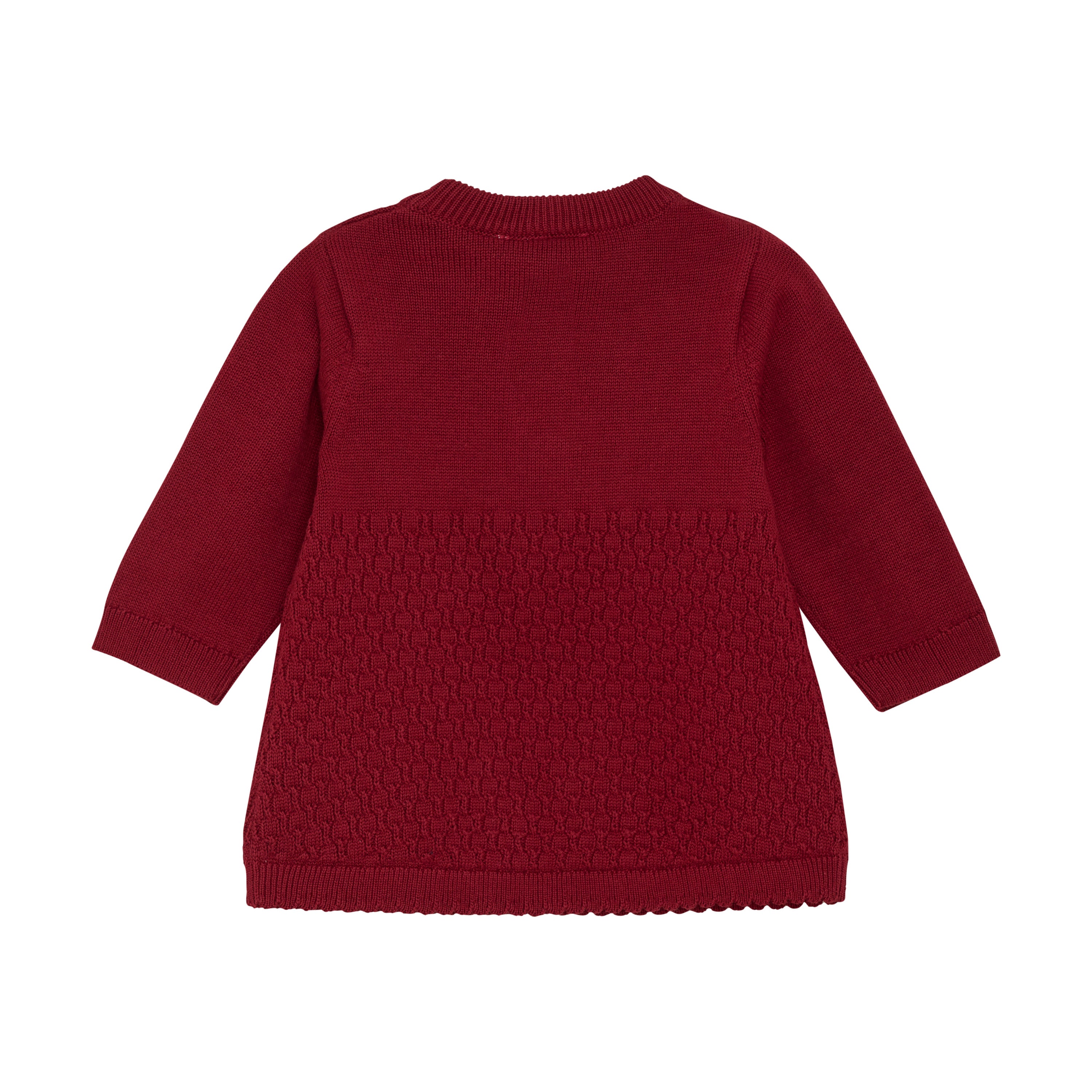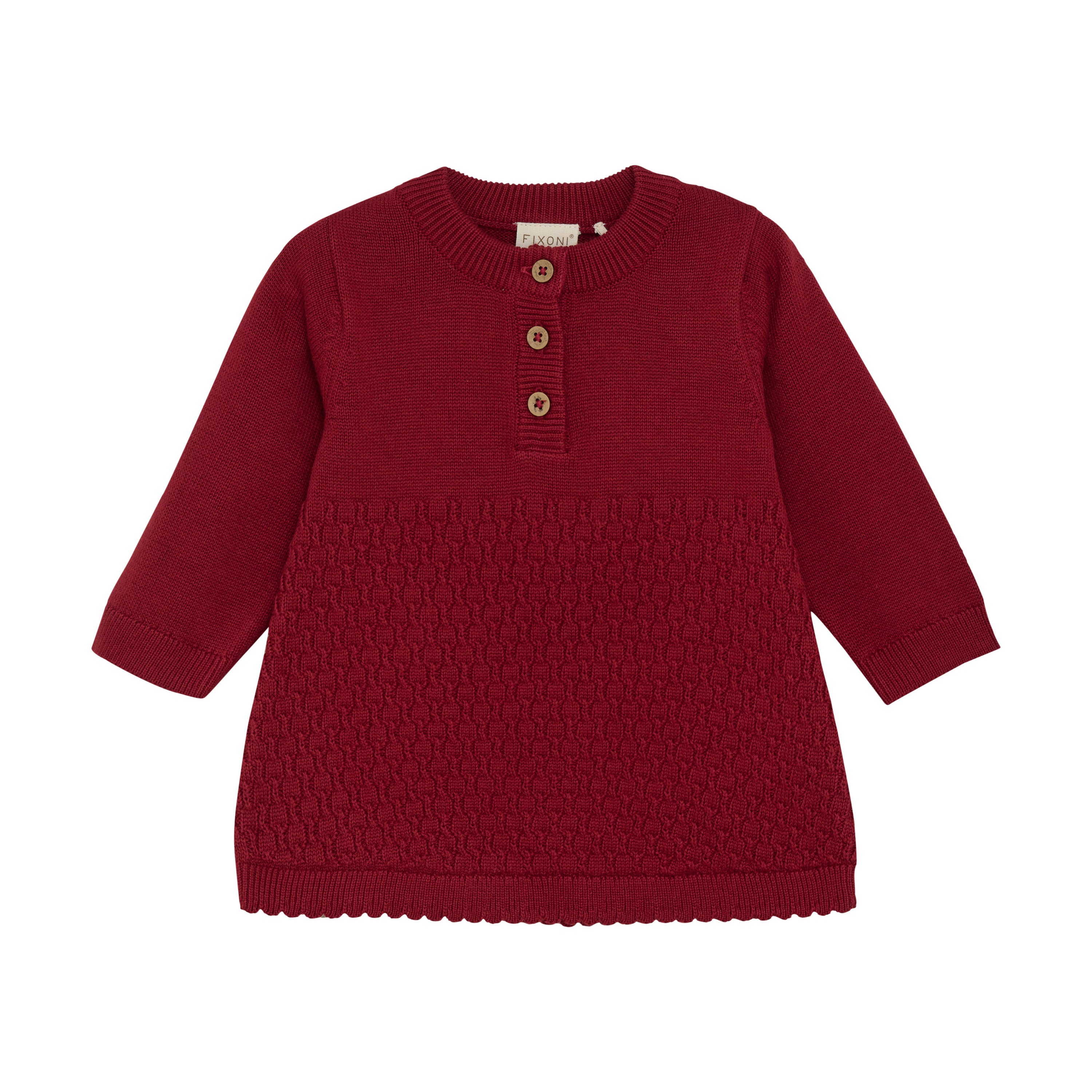 Dieses weiche Strickkleid von Fixoni besteht zu 100% aus Bio-Baumwolle und ist in einem schönen satten Rot. Das schöne Babystrickkleid hat vorne drei Knöpfe zum Öffnen und ist mit einem hübschen Strickmuster versehen. Passend zu diesem Strickkleid ist auch die Strickhose und Strickjacke in der gleichen Farbe und Material bei uns erhältlich.