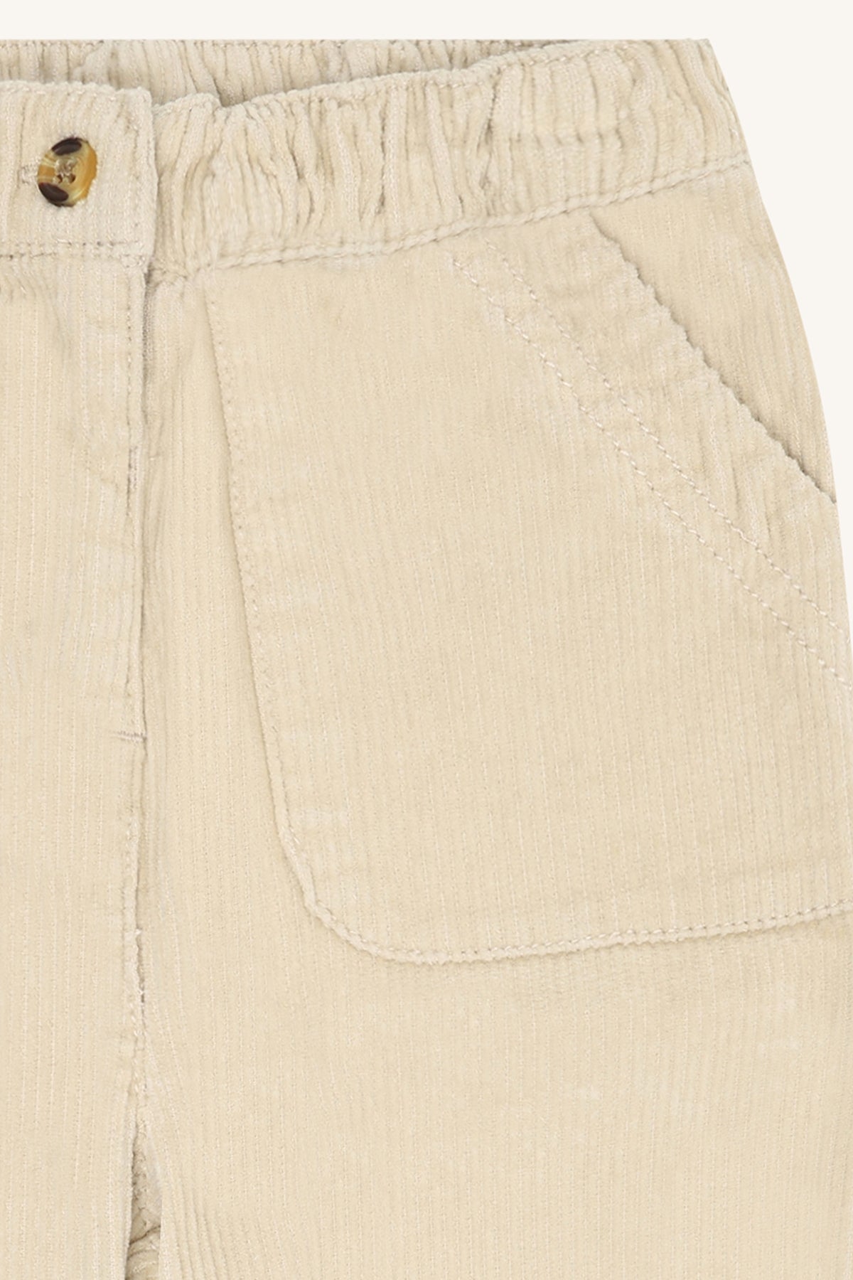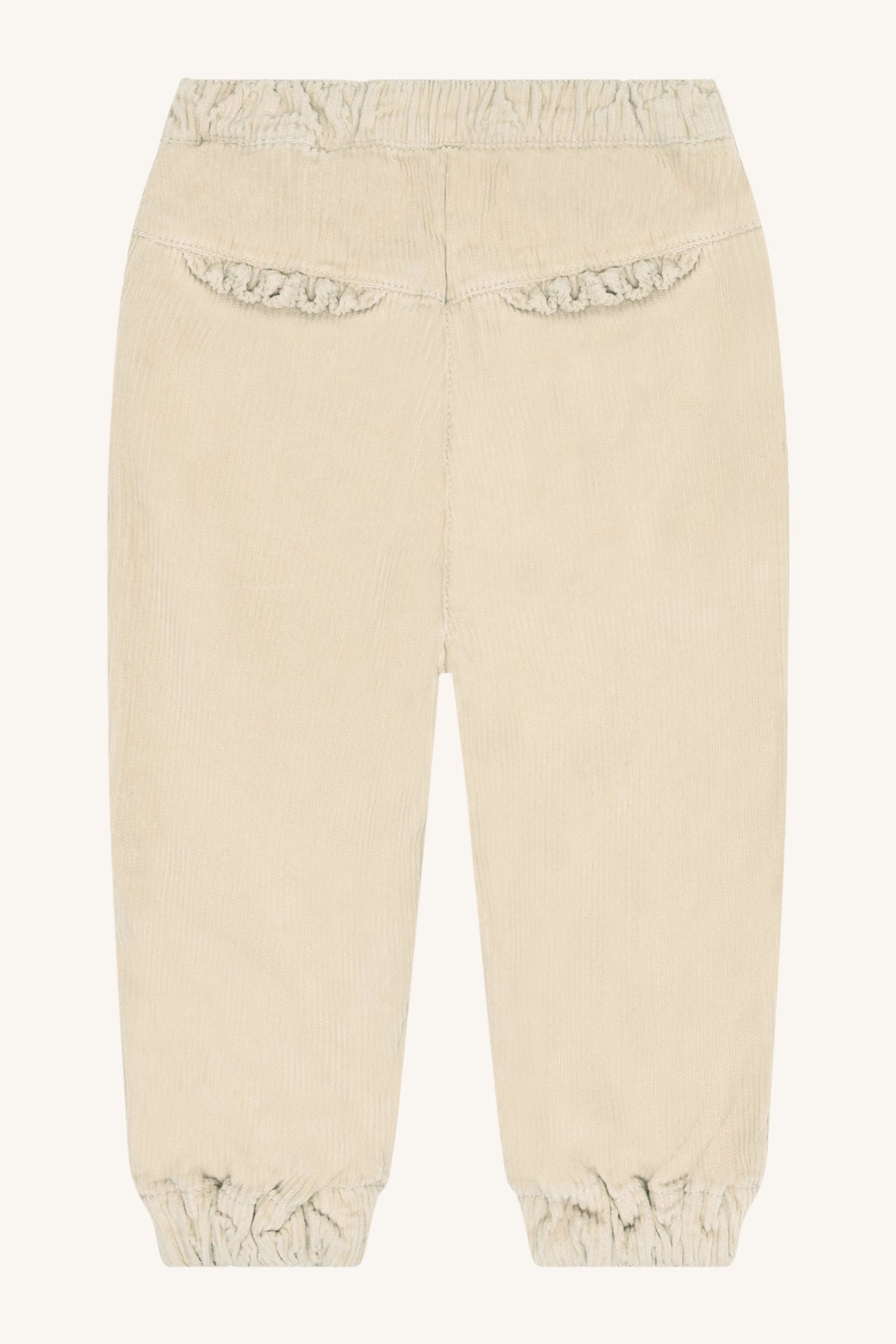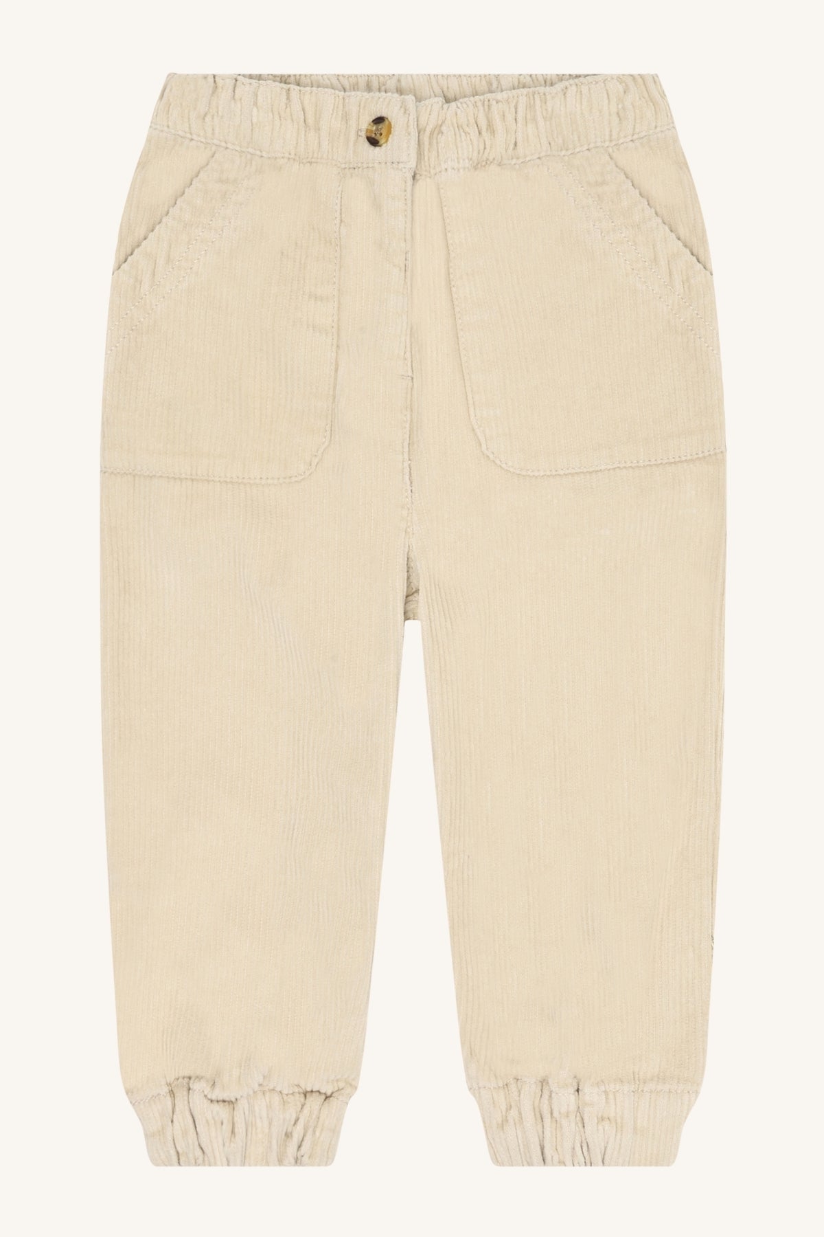 Diese lässige lange Hose von Hust and Claire ist aus einem schönen feinen Cordstoff. Die Kinderhose hat einen elastischen Bund und elastische Beinabschlüsse. Die lässige Kinderhose hat eine verstellbare Taille mit einem Knopf, Hosentaschen vorne und zwei Gesässtaschen hinten mit Rüschen.