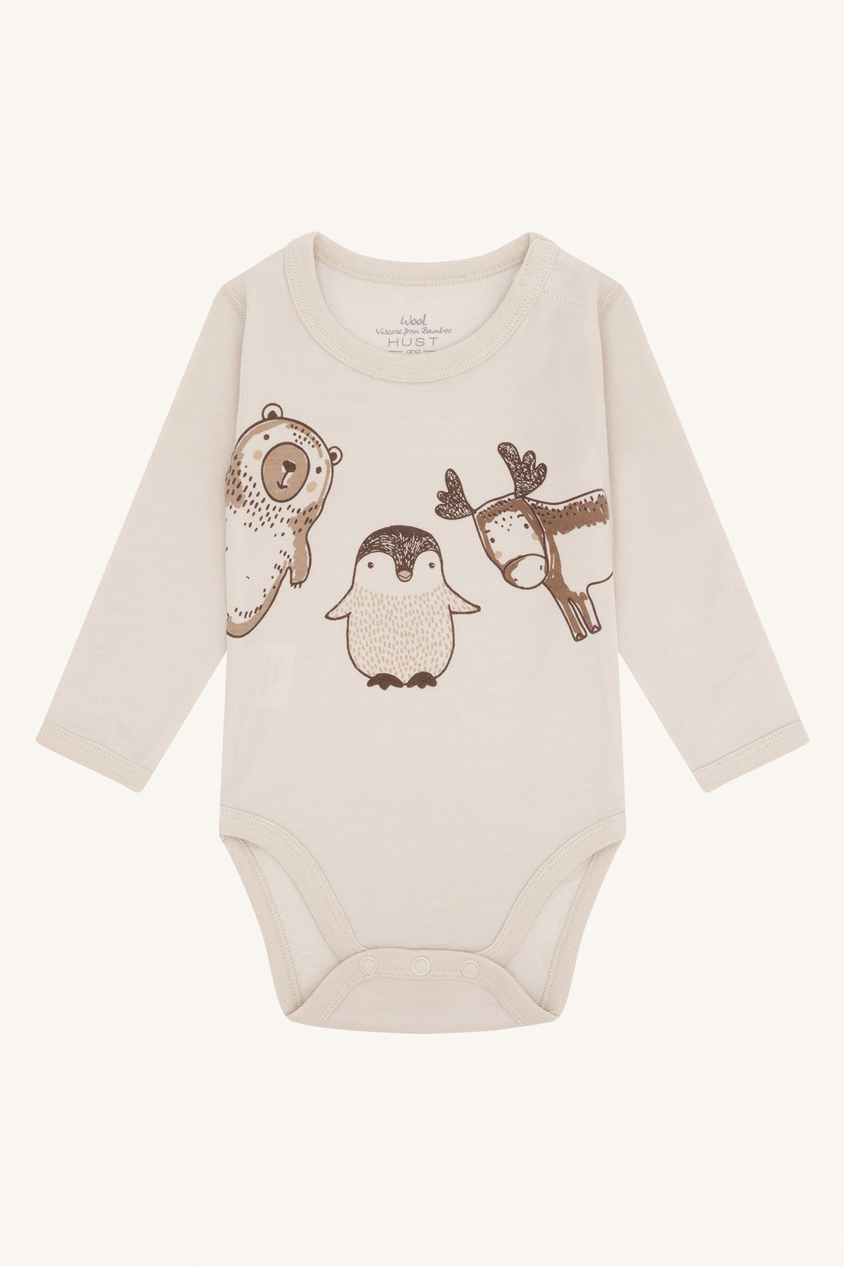 Merinowolle-Bambus Body Baloo Animals French Oak Beige von Hust & Claire