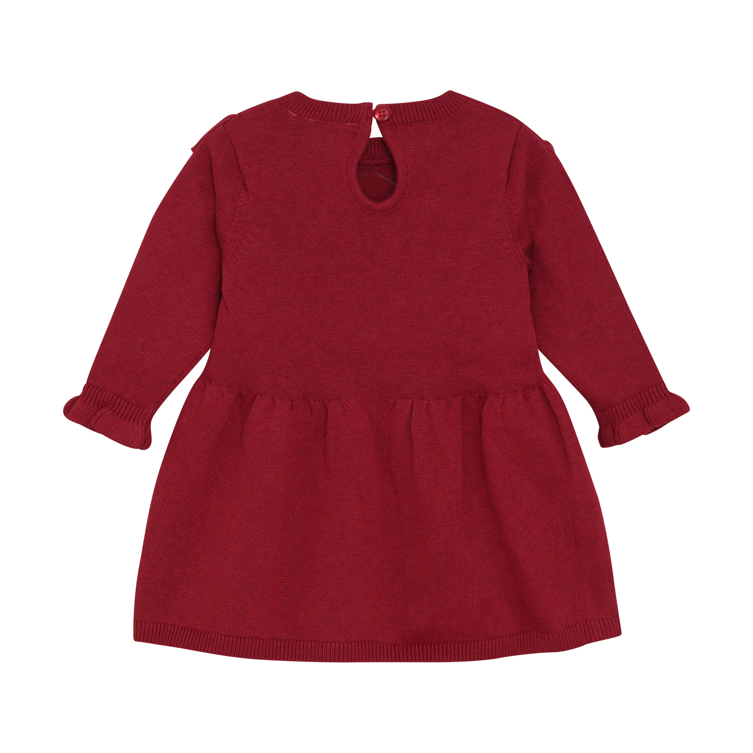 Dieses schöne Babykleid von Minymo hat ein feines Strickmuster und feine Rüschen seitlich vorne. Das Strickkleid passt wunderbar in die Weihnachtszeit. Das Babystrickkleid wird hinten mit einen feinen Knopf geschlossen.