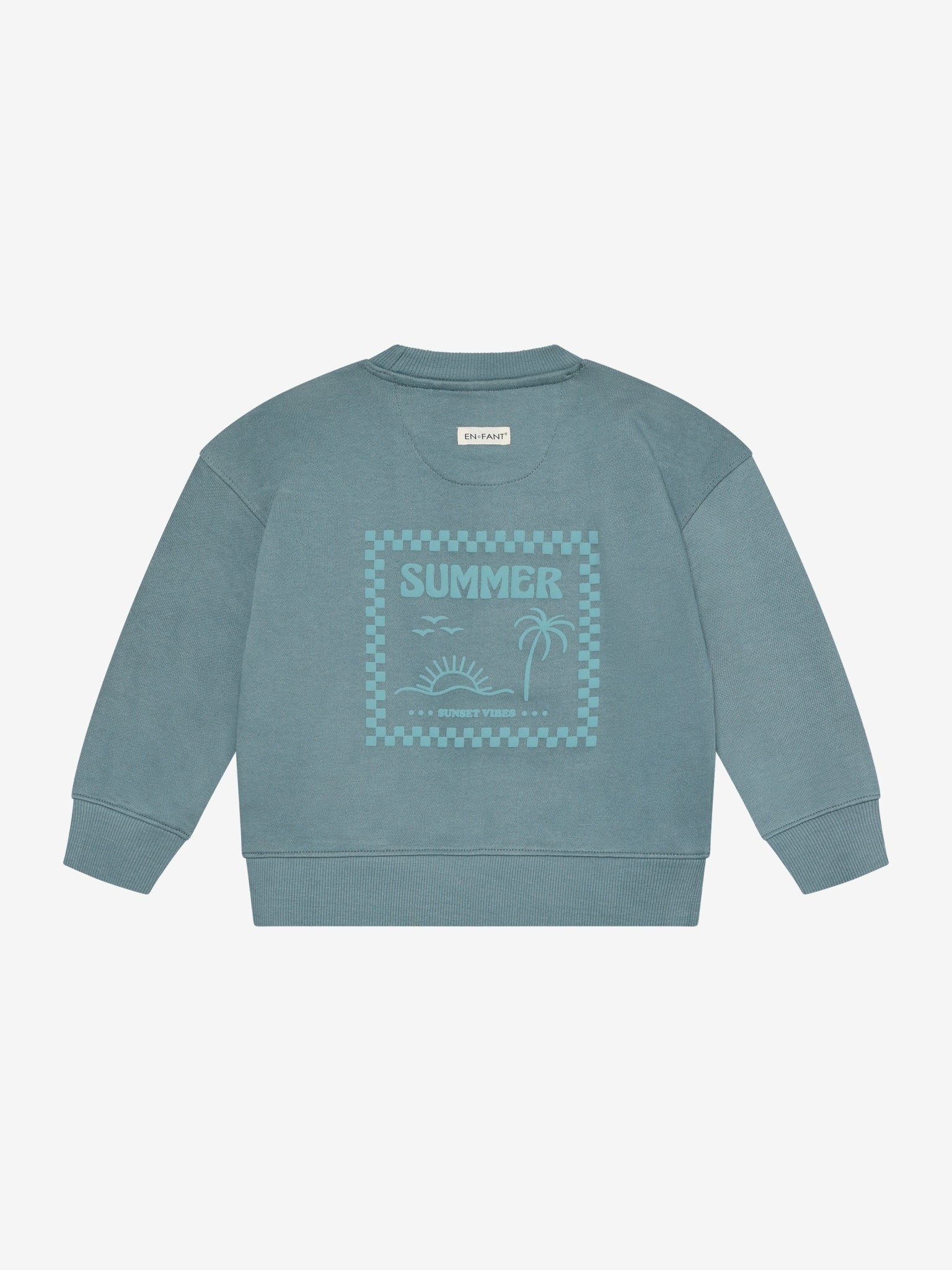 Dieser lässige Kinderpullover von En Fant besteht zu 100% aus Bio-Baumwolle. Der bequeme Sweater hat gerippte Bündchen und einen feinen Rückenprint. Der dünne Unisex Pullover eignet sich wunderbar für die Übergangszeit.