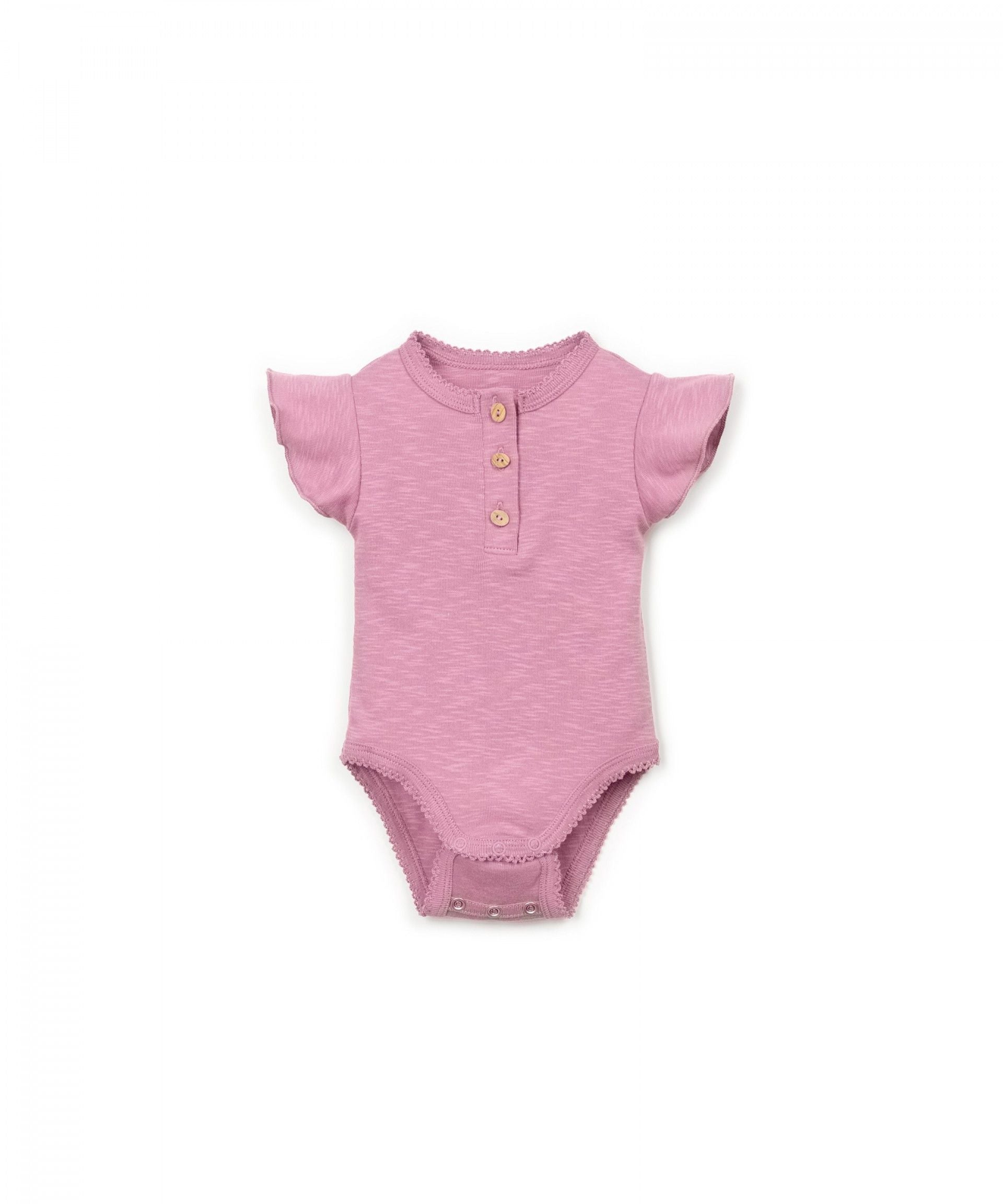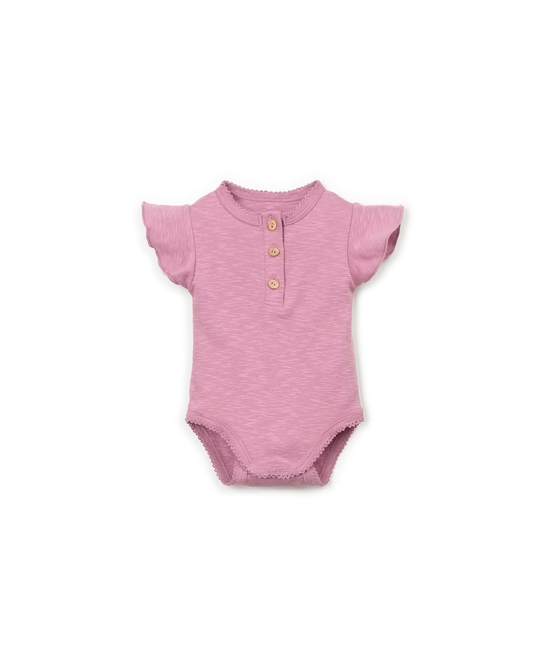 Dieser süsse kurzärmelige Body von Play Up besteht zu 100% aus Bio-Baumwolle. Der süsse Babybody hat einen Rundhalsausschnitt mit drei feinen Holzknöpfen vorne sowie Druckknöpfe im Schritt um das An- und Ausziehen zu erleichtern. Die zwei Reihen Druckknöpfe im Schritt, lassen den Body optimal mitwachsen. Der Babybody passt wunderbar zur Sommerkollektion von Play Up.