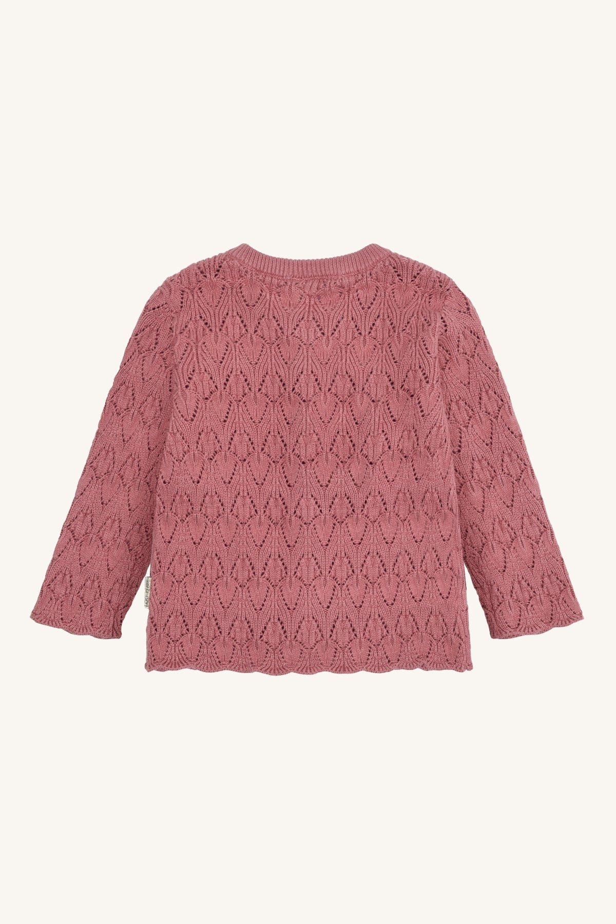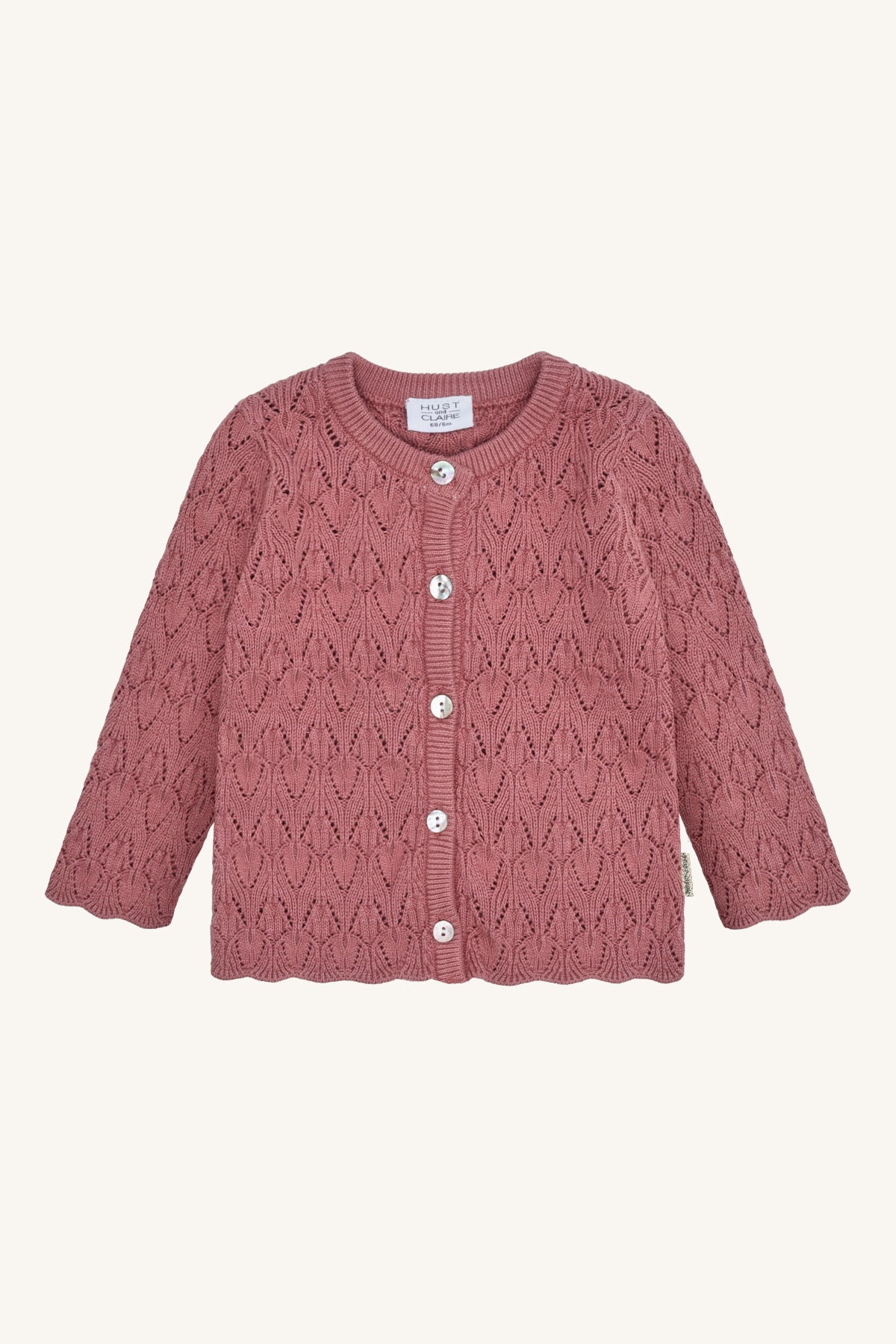 Diese schöne Strickjacke von Hust and Claire besteht zu 100% aus Bio-Baumwolle. Die bequeme Baby- und Kinderstrickjacke passt wunderbar zu verschiedenen Shirts, Hosen oder einem hübschen Kleid.