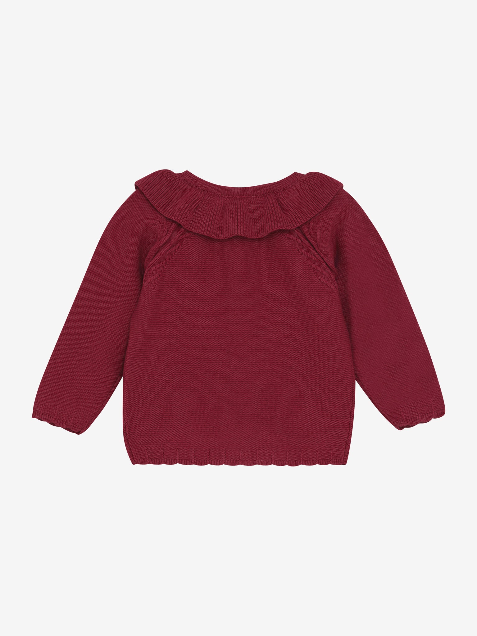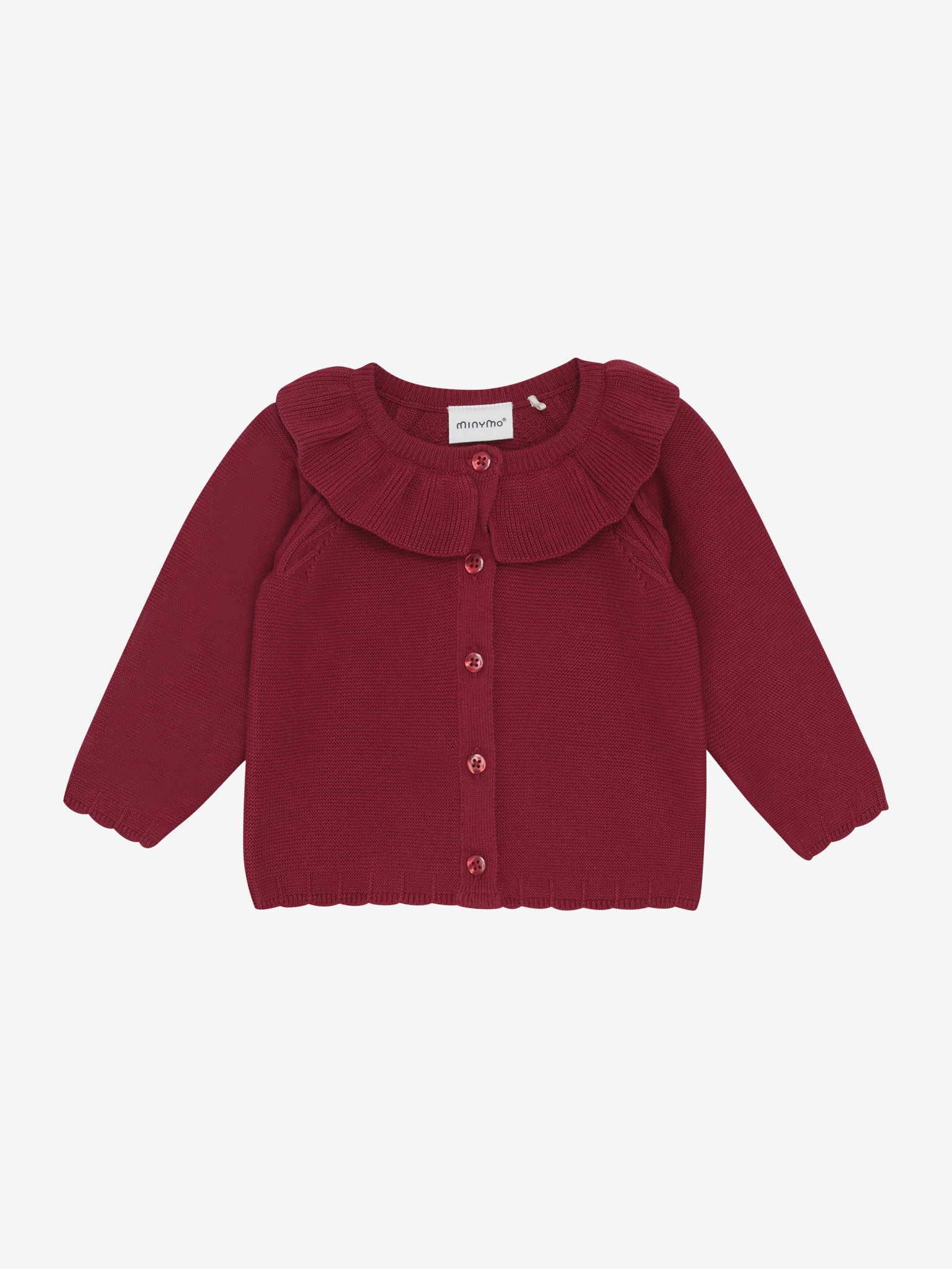 Dieser schöne Cardigan von Minymo hat ein feines Strickmuster und einen hübschen grossen Kragen. Der Babycardigan passt wunderbar in die Weihnachtszeit. Die Babystrickjacke wird vorne mit feinen Knöpfen geschlossen.