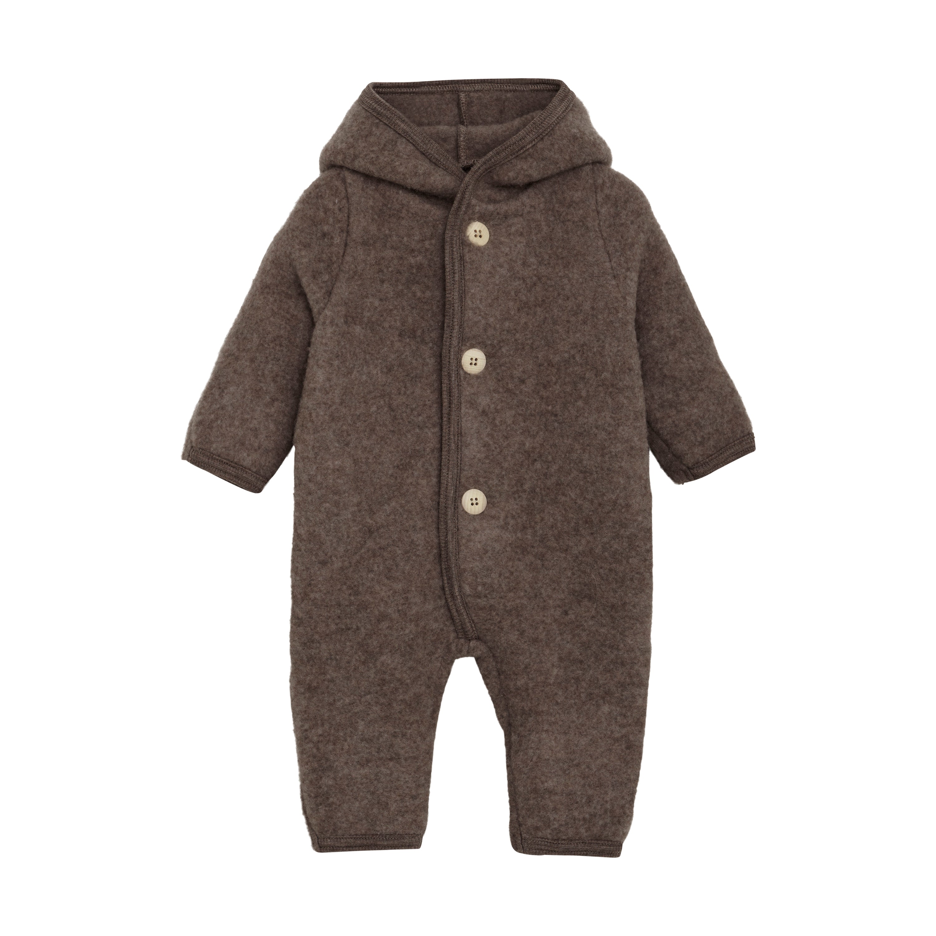 Dieser super weiche Wollfleece Overall von Huttelihut besteht zu 100% aus Merinowolle. Der kuschelige Einteiler wird vorne mit schönen Holzknöpfen geschlossen. Die Ärmel- und Beinabschlüsse können bis zur Grösse 80 umgekrempelt werden, somit können die Hände und oder Füsse wunderbar warm gehalten werden. Dank der süssen Kapuze, ist der Kopf des Babys auch gleich kuschelig warm geschützt.
