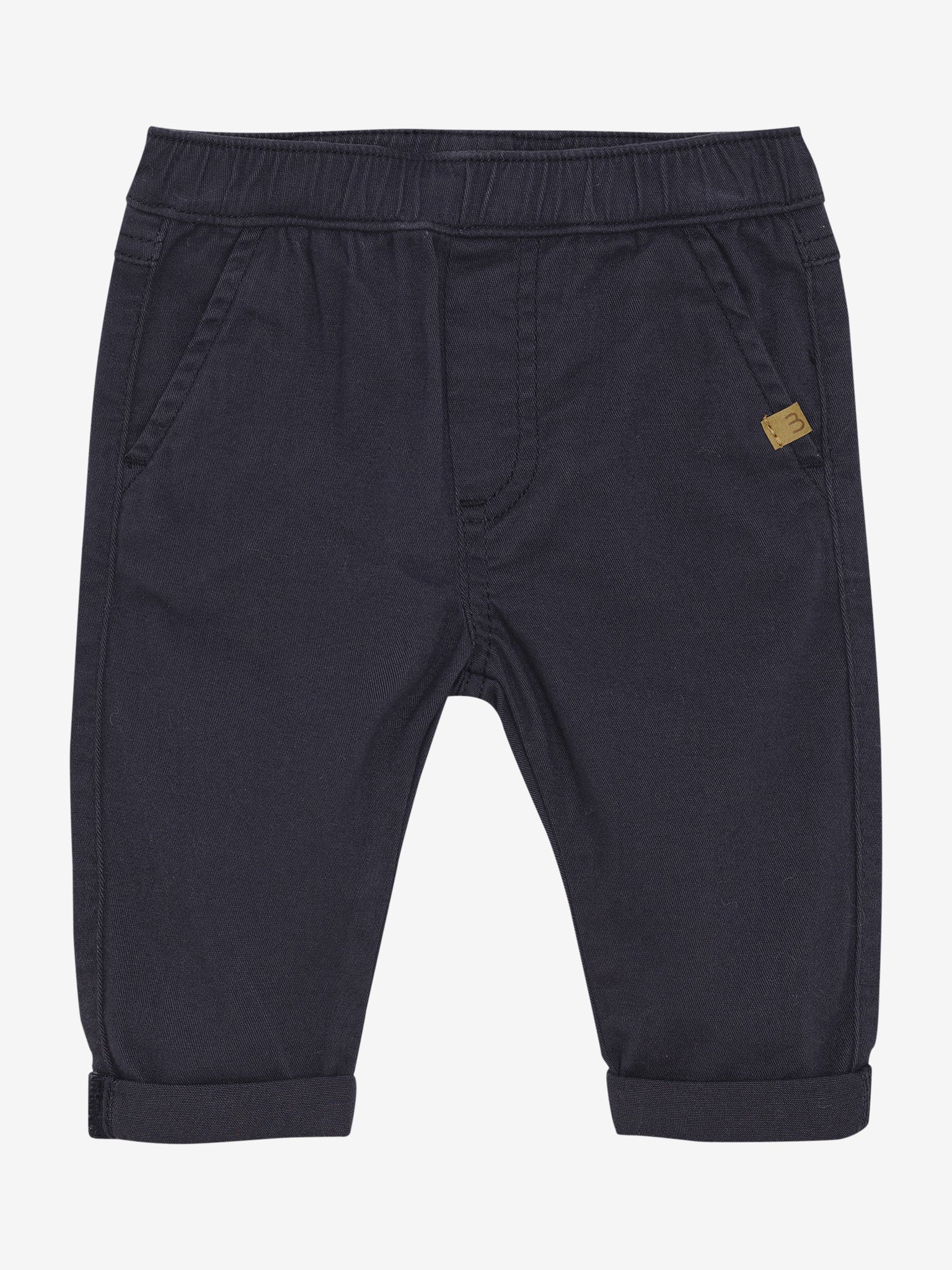 Minymo's long trousers are made from organic cotton. It has an elastic waistband, two side pockets and two decorative wooden buttons.