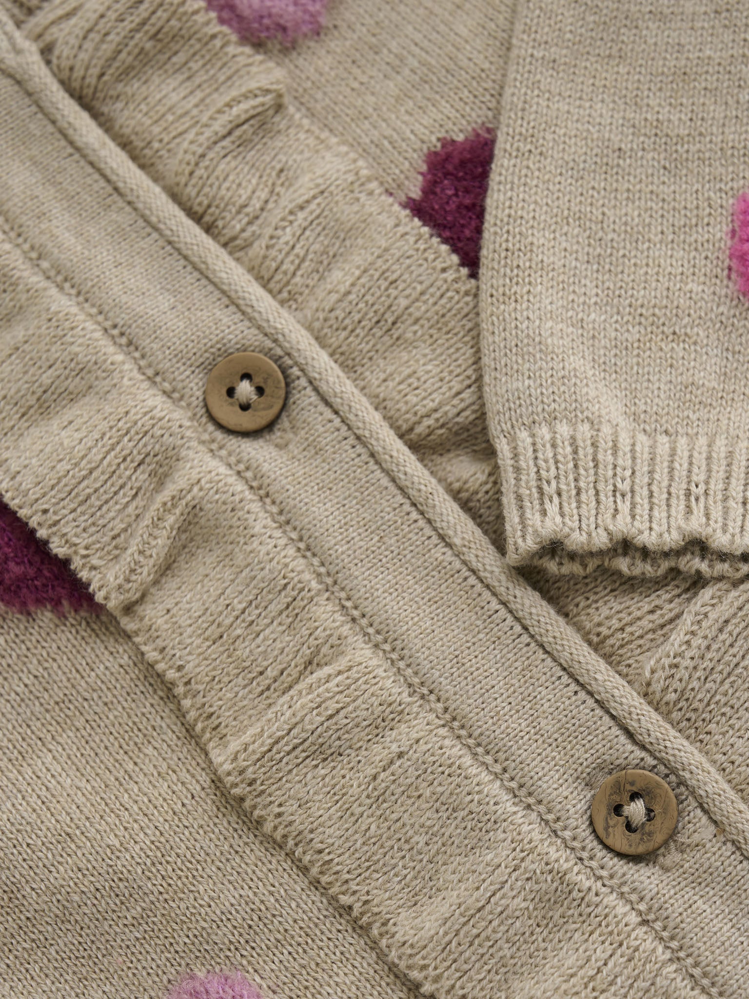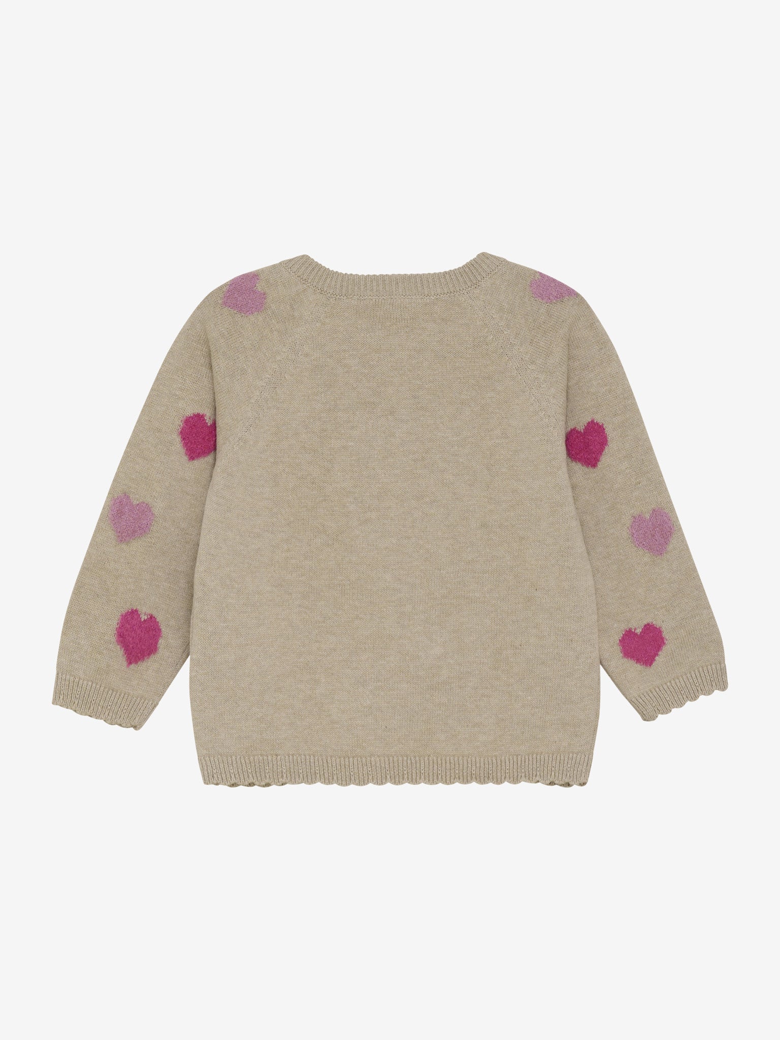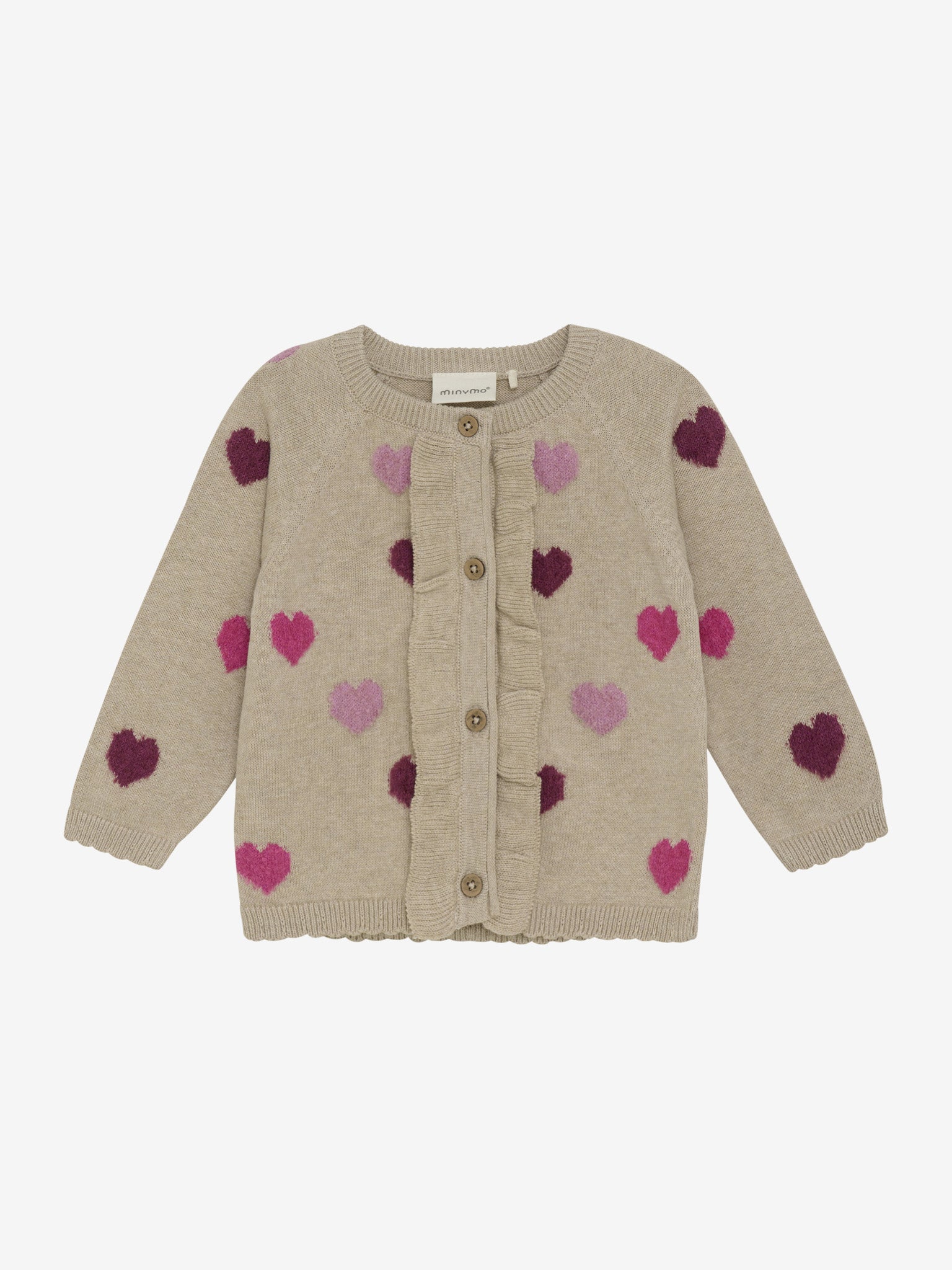 The beautiful cardigan from Minymo is made from 100% organic cotton. The cardigan has a special knit pattern and is ribbed at the neckline, wrists, button placket and hem. The baby cardigan closes at the front with wooden buttons. The color jade green goes wonderfully with beige, soft pink or white and can therefore be combined with various one-piece suits or bodysuits and trousers.