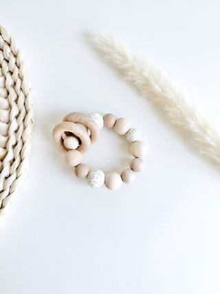 The teething ring from Rosablue is made by hand in Switzerland and is a helpful toy for the very little ones. It reduces the pressure on the gums while biting and at the same time supports your baby's first attempts at grasping.