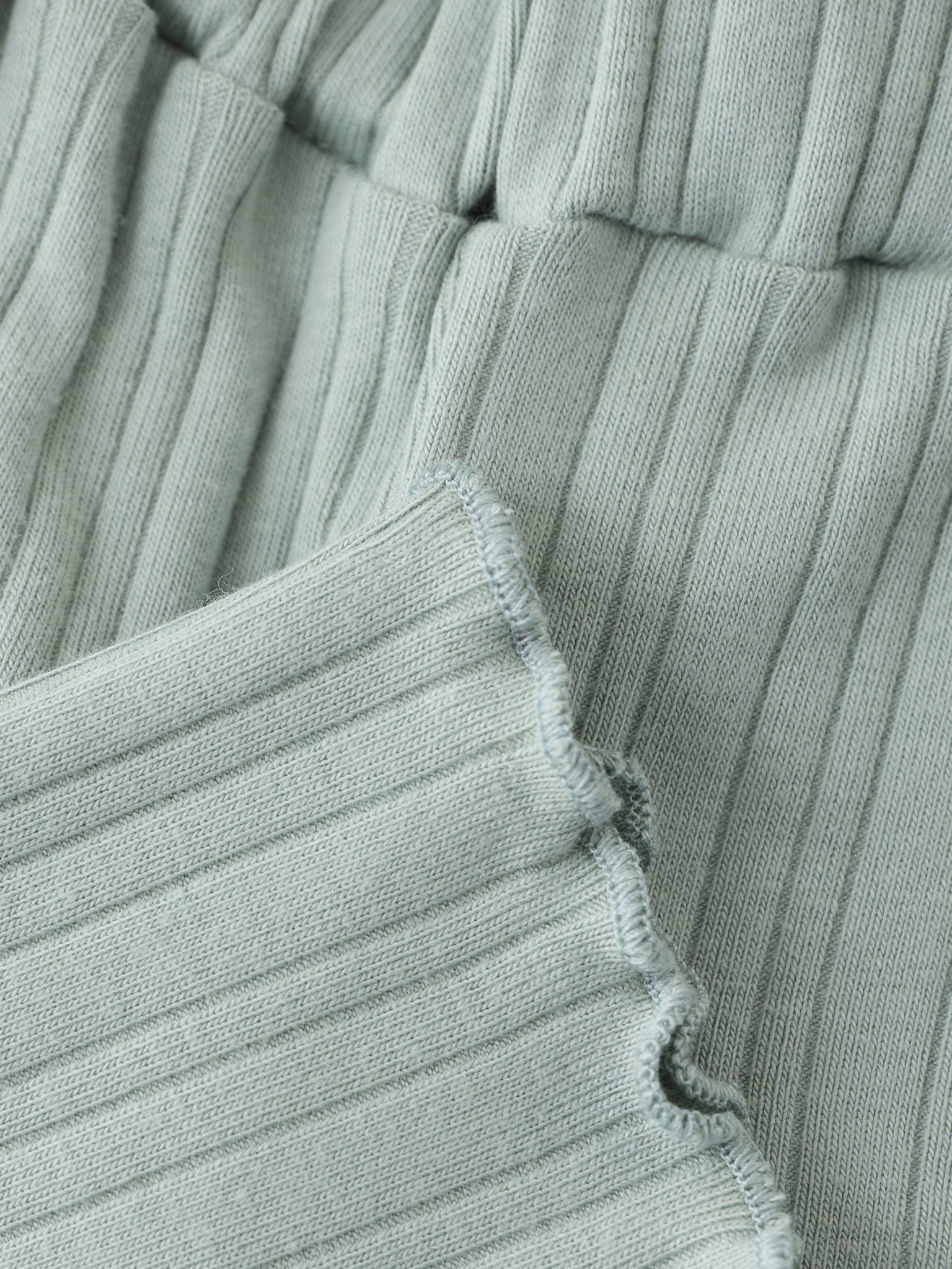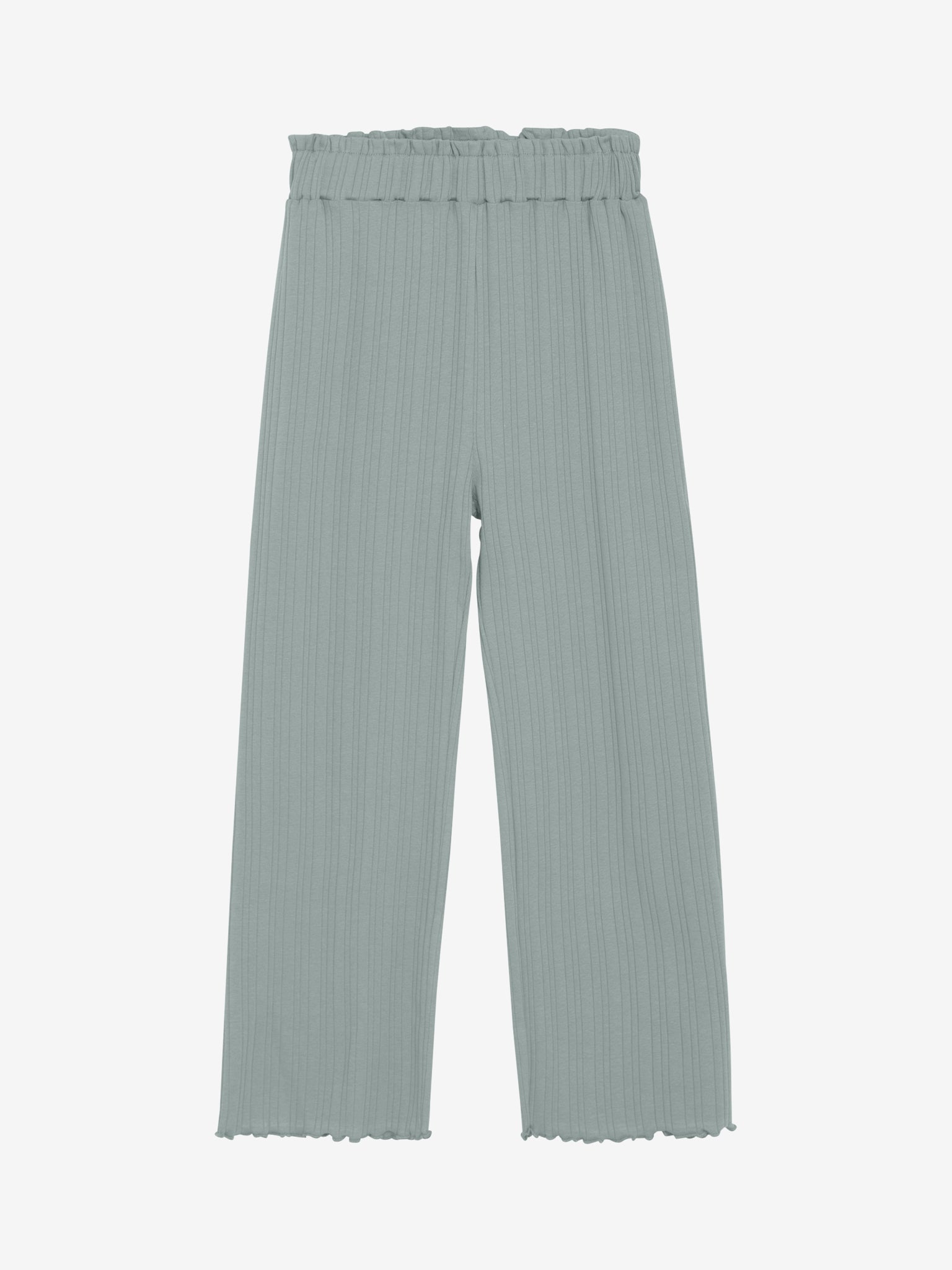 The comfortable trousers from Minymo are made from a soft ribbed quality in the beautiful color coral. It has an elastic waistband and is wide cut. The children's trainer pants are made of cotton and their fibers are TENCEL™ certified, produced by LENZING™. This means that the material feels like artificial silk, super soft and very comfortable to wear.