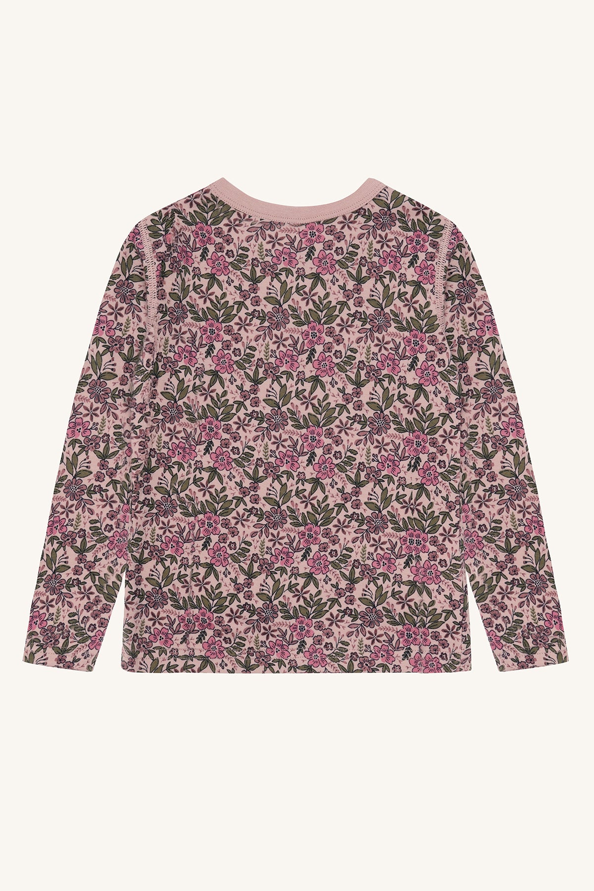 Das bequeme langarm Shirt von Hust and Claire ist aus bequemer Merinowolle und Bambusviskose. Das weiche Longsleeve ist rosa mit einem schönen Blumenprint und hat einen Rundhalsausschnitt. Das kuschelige Oberteil wird dank der wärmeregulierenden Fähigkeit gerne am Tag und in der Nacht sowie in der kälteren Jahreszeit getragen. Das weiche Langarmshirt hat aussen eine Wollschicht und innen feine Bambusviskose.