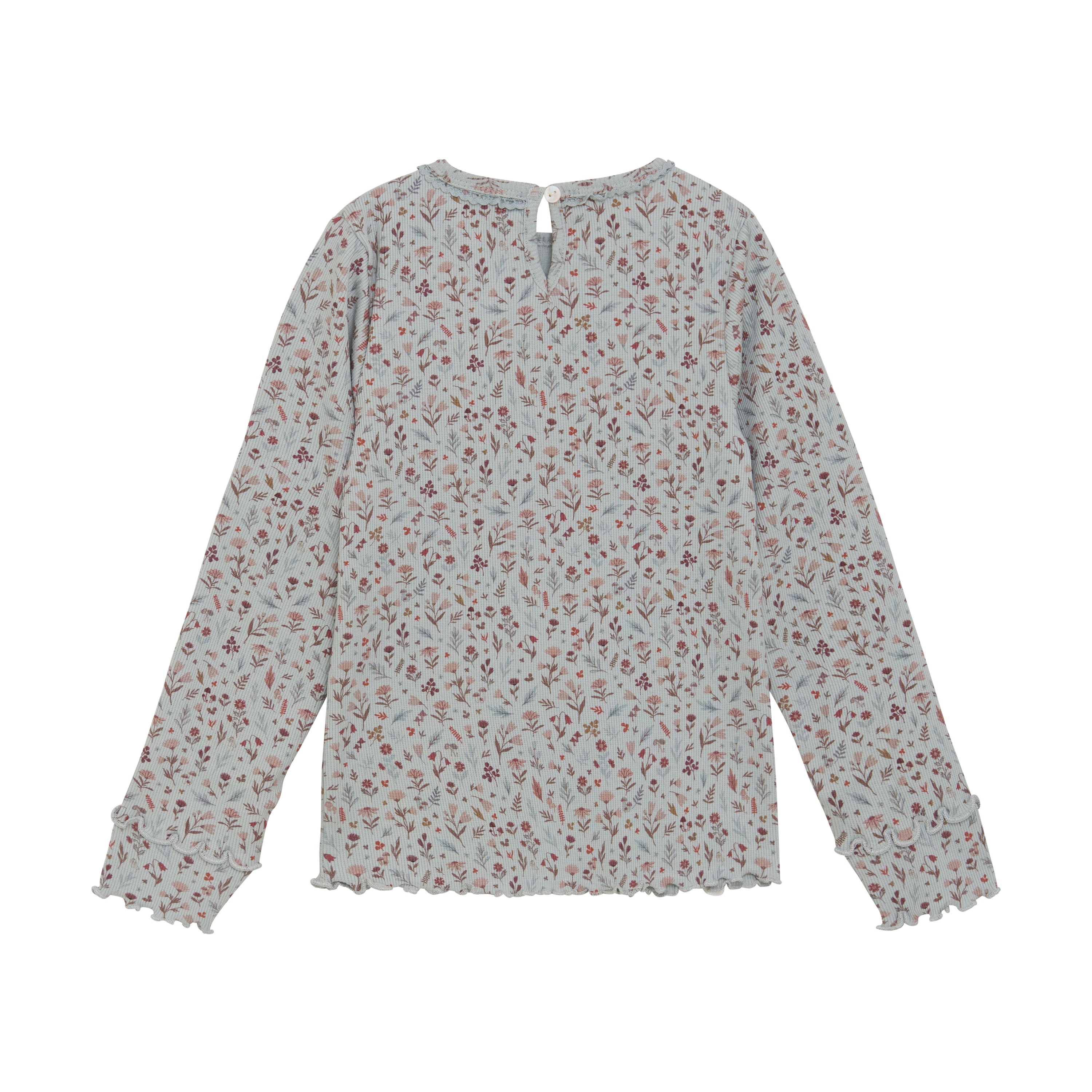 Langarm Ripp-Shirt Hellblau mit Blumenmuster von Minymo