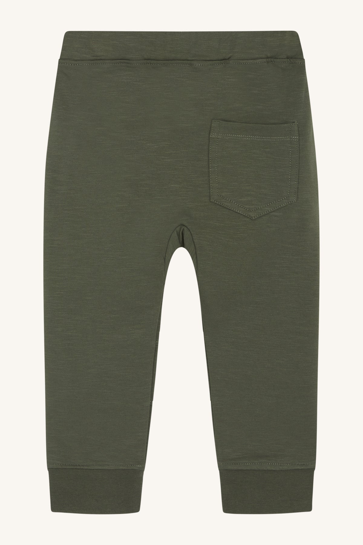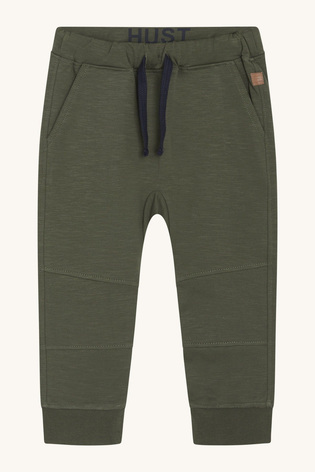 Diese schöne waldgrüne Jogginghose von Hust and Claire besteht aus Bio-Bumwolle und ist innerlich fein gebürstet (gefüttert) was die Hose super kuschelig macht. Die Kinderhose hat zwei Seitentaschen, eine Gesässtasche und enge gerippte Beinabschlüsse. Die bequeme Hose hat einen elastischen Bund mit einer Zierkordel und einen Gummizug auf der Innenseite, um die Grösse optimal anzupassen.