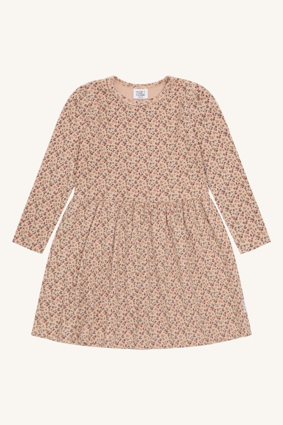 Dieses hübsche langarm Kleid von Hust and Claire besteht aus Bio-Baumwolle und Modal, diese Fasern werden aus Buchenholz hergestellt. Das heisst, das Material fühlt sich an wie Kunstseide, super weich und sehr angenehm zu tragen. Das bequeme Kinderkleid hat ein hübsches feines Blumenmuster und passt wunderbar zu verschiedenen Leggings und Strickjacken.