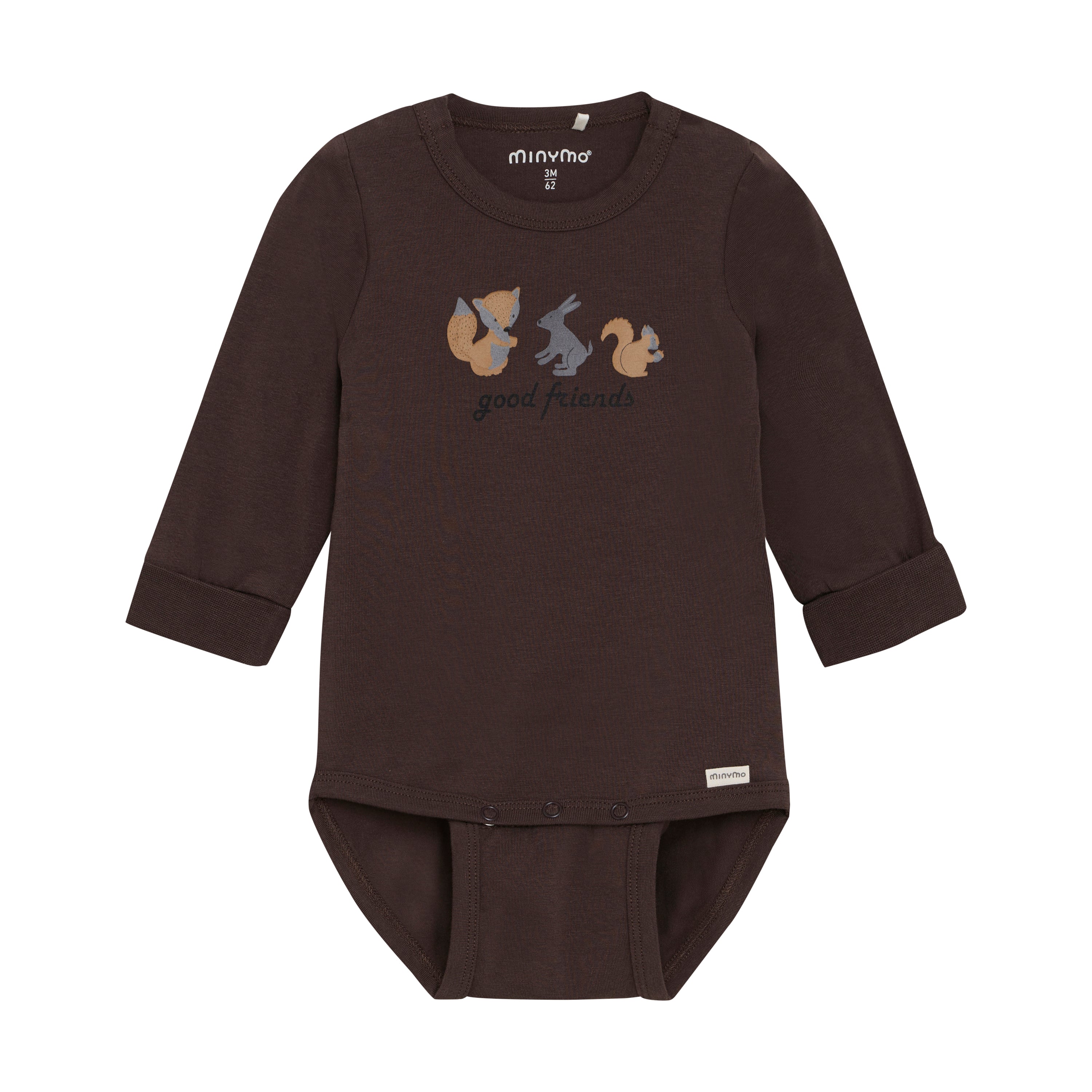 Langarm Baumwoll Body Braun mit Tiermotiv von Minymo