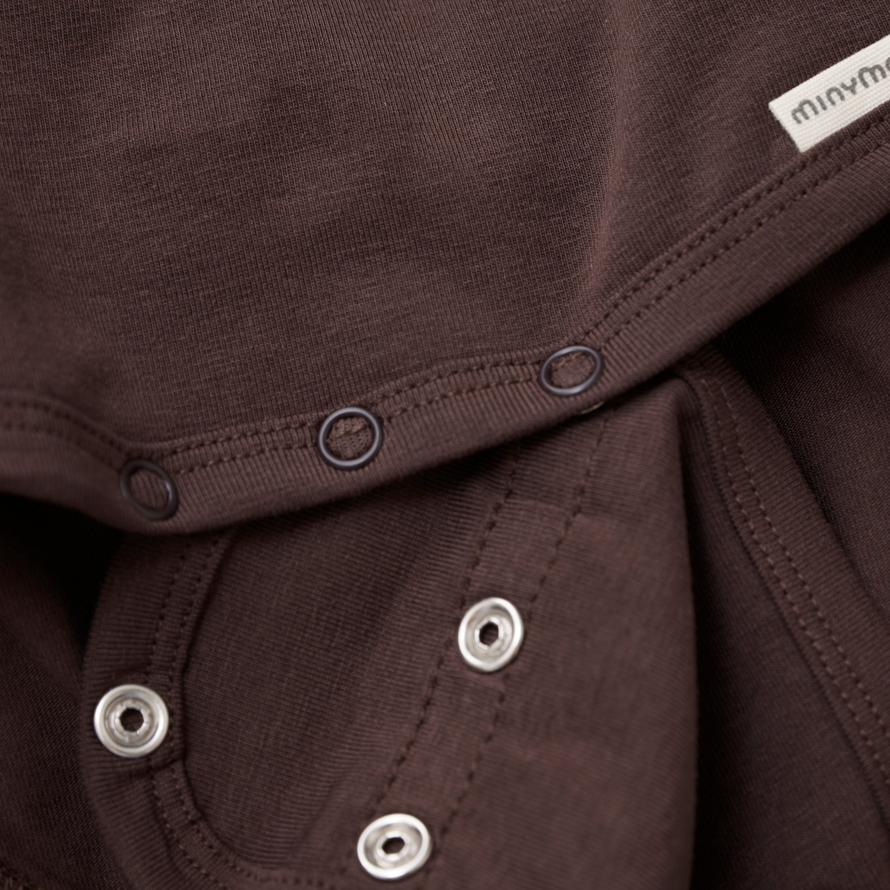 Dieser super süsse Babybody von Minymo besteht aus Bio-Baumwolle. Der Langarmbody ist uni dunkelbraun mit einem Tiermotiv auf der Brust. Die Druckknöpfe auf der Schulter und im Schritt vereinfachen das An- und Ausziehen.