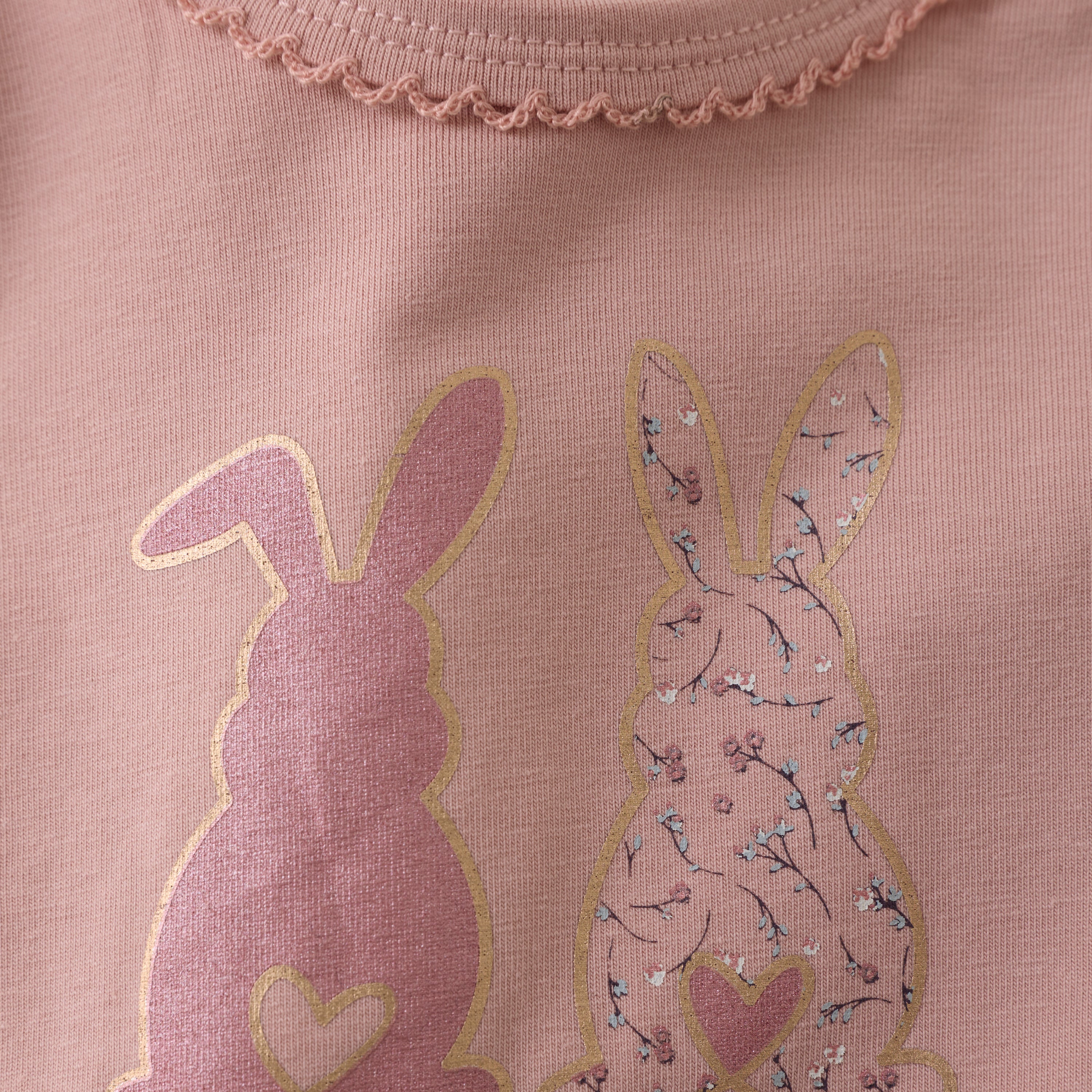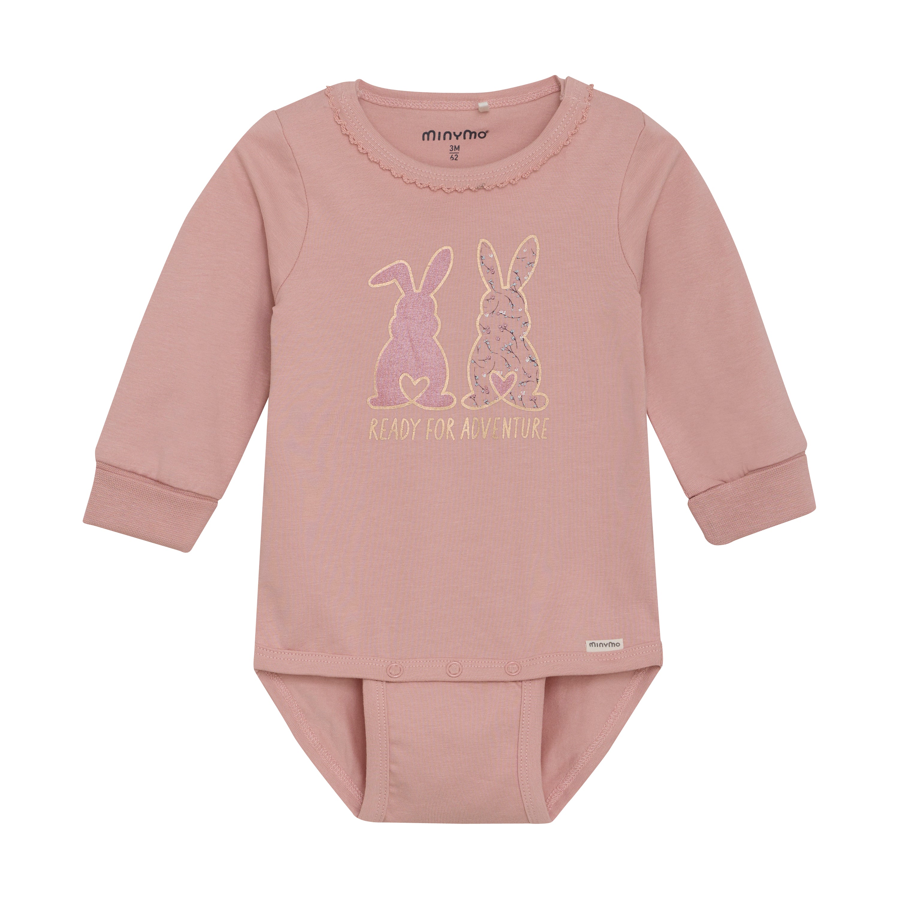 Langarm Baumwoll Body Misty Rose mit Hasenmotiv von Minymo