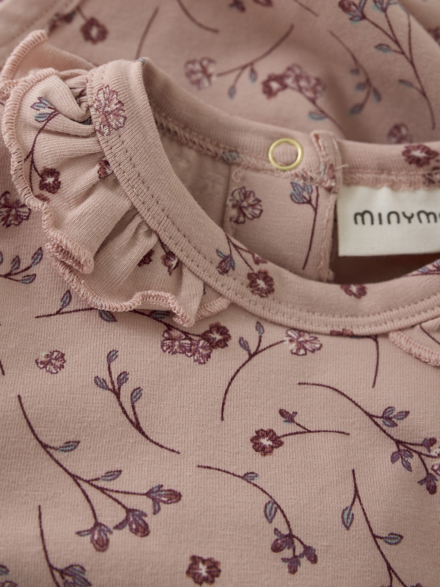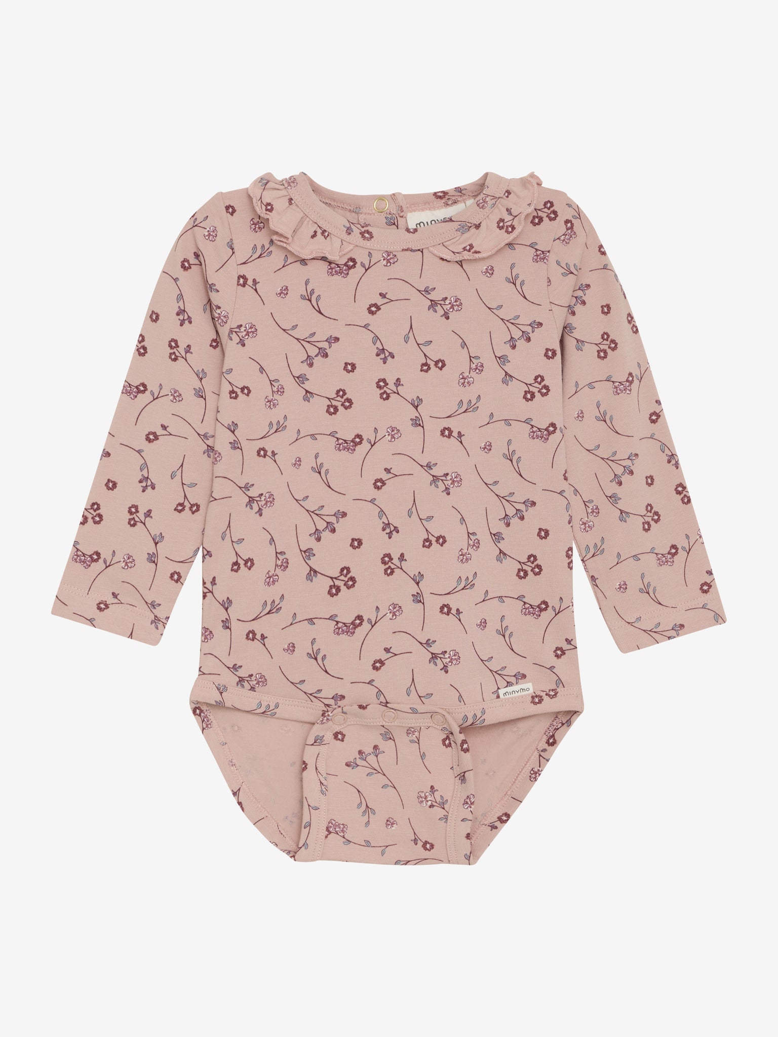 Dieser super süsse Babybody von Minymo besteht aus Bio-Baumwolle. Der Kragen ist fein gerüscht und der ganze Body hat ein schönes herbstliches Blumenmuster. Die Druckknöpfe im Nacken und im Schritt vereinfachen das An- und Ausziehen.