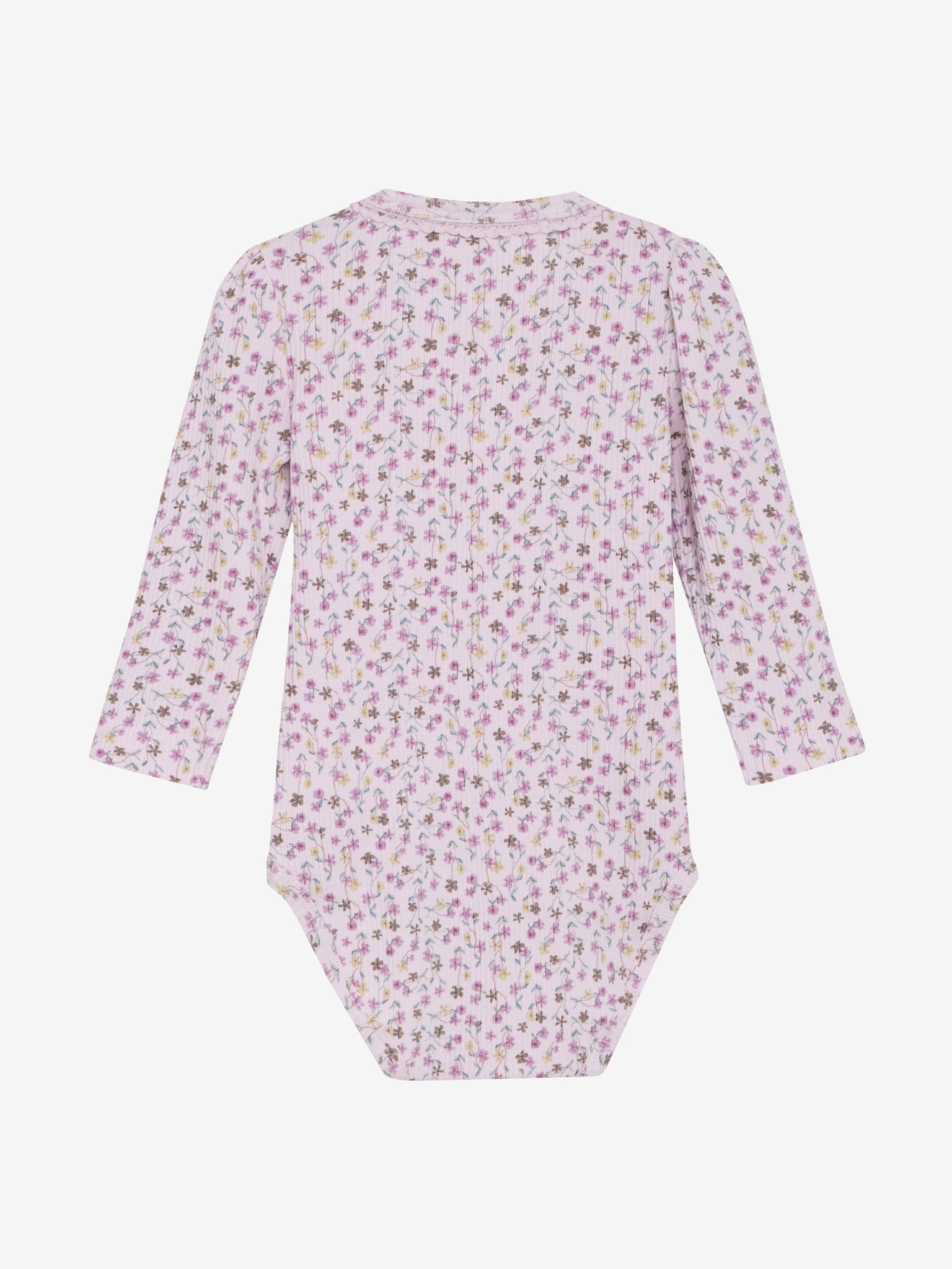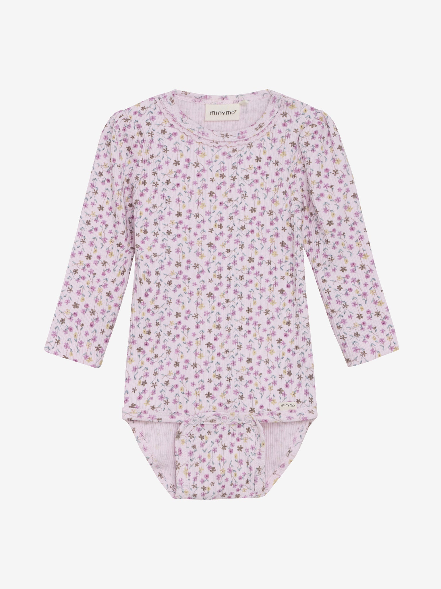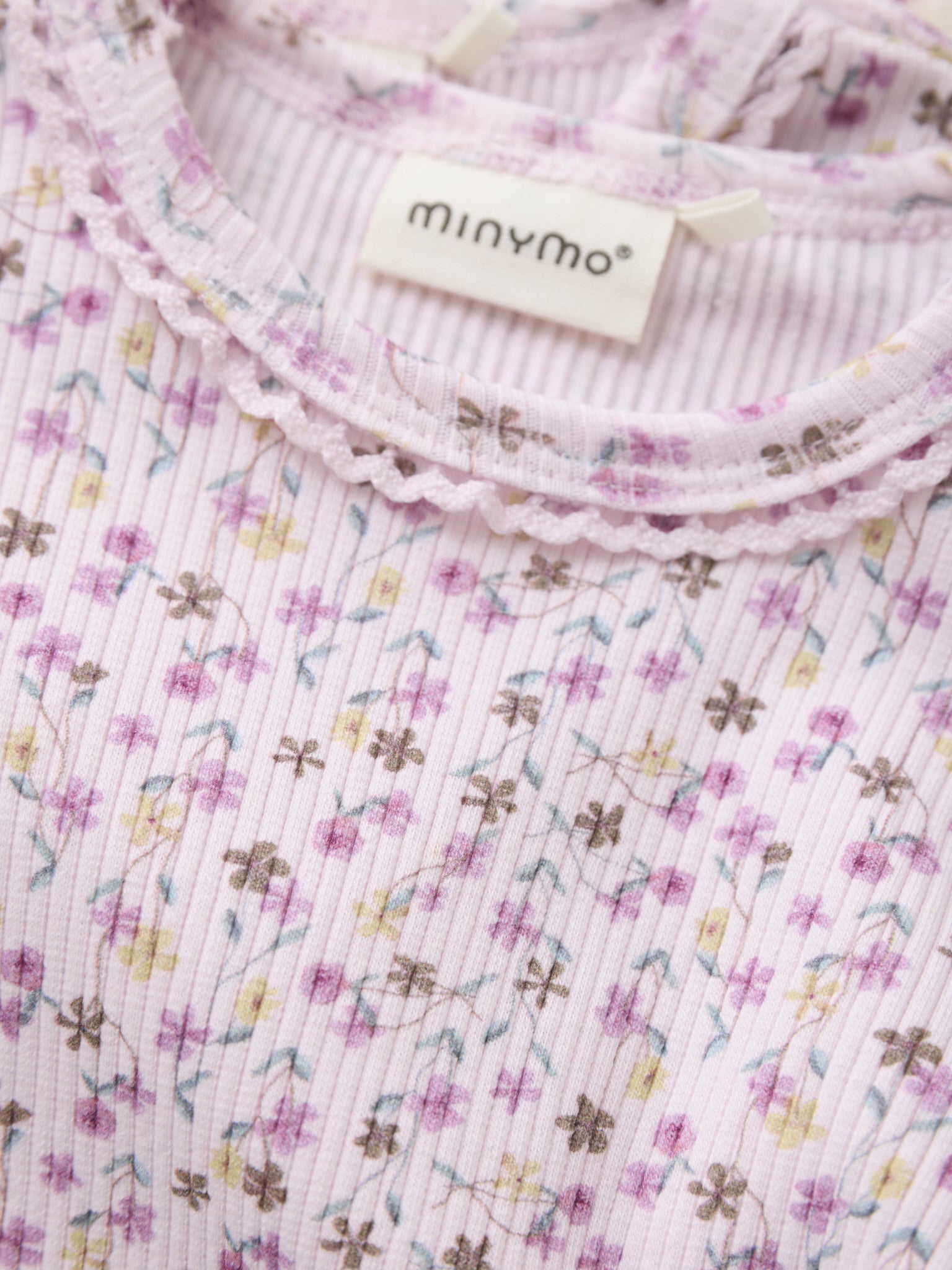 Langarm Rib Body rosa mit Blumenmuster von Minymo