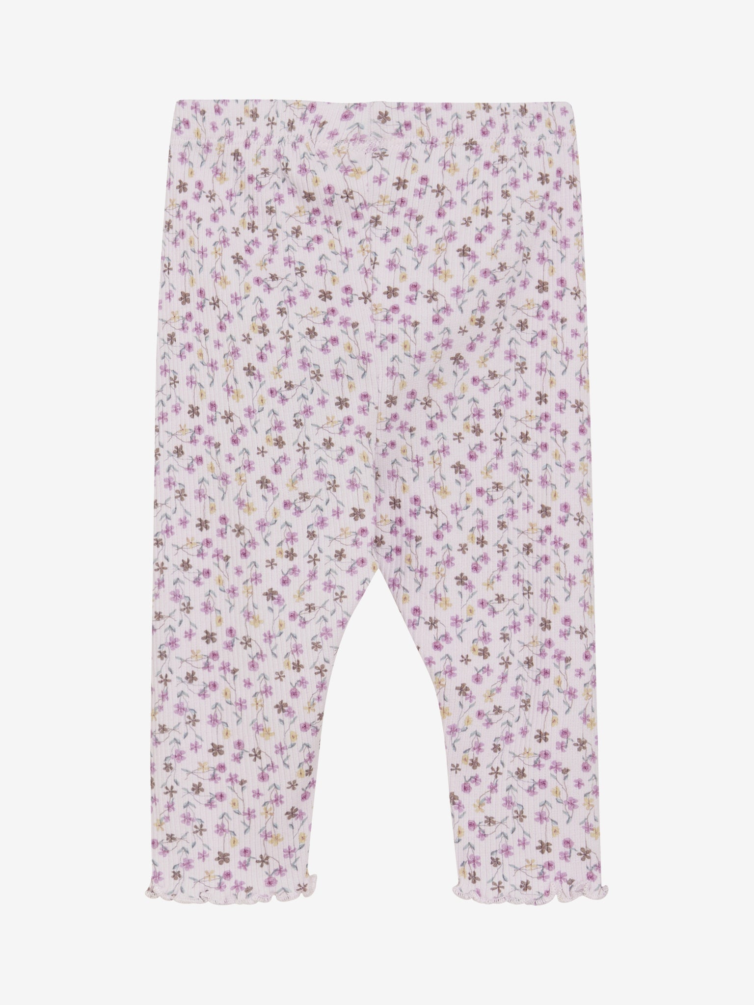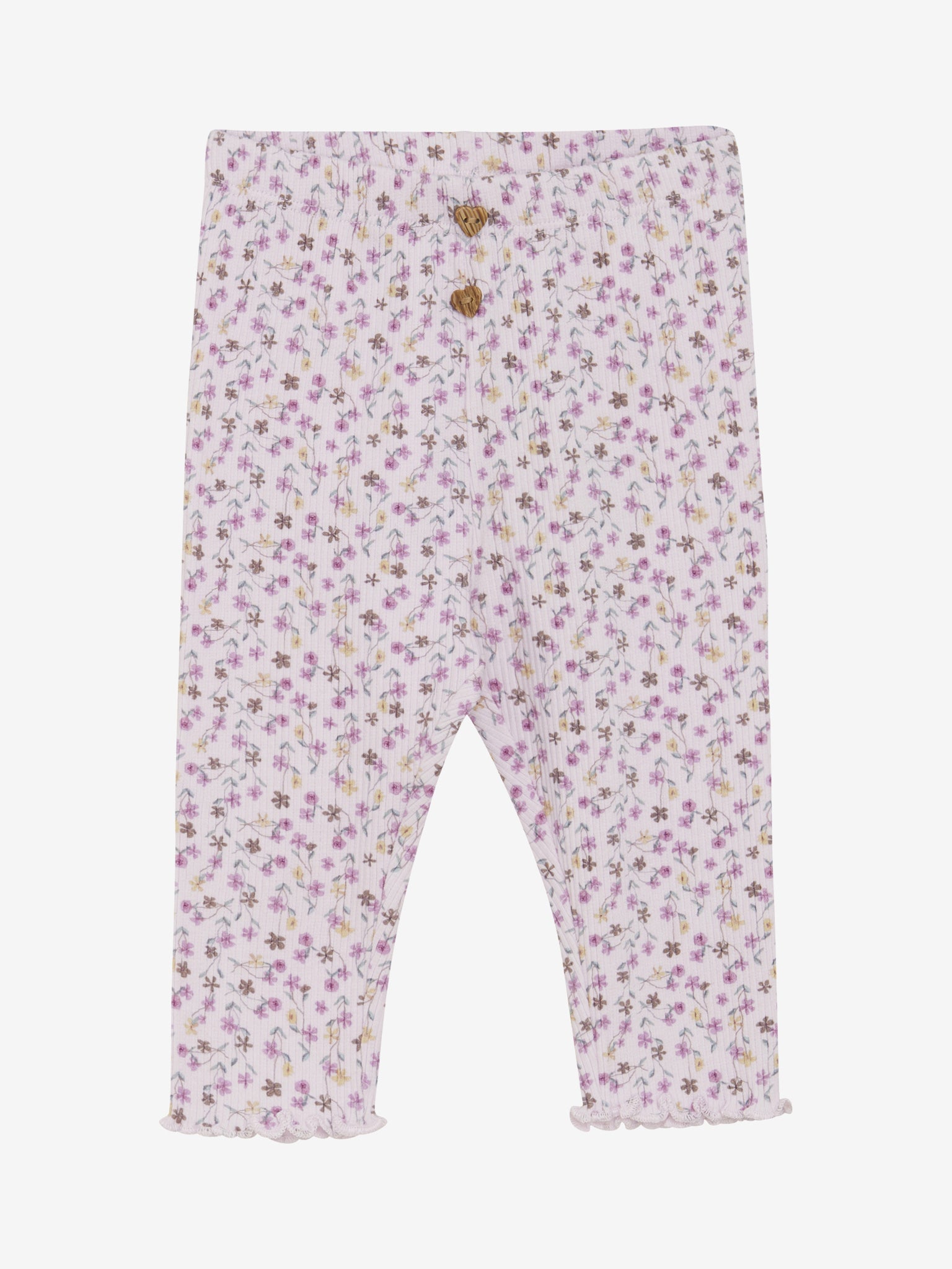 Die süsse Hose für Babys von Minymo besteht aus weicher Bio-Baumwolle und fühlt sich deshalb sehr angenehm an auf der Haut. Die Babyleggings hat einen elastischen Bund, hübsche gewellte Beinabschlüsse und zwei kleine Zierholzknöpfe in Herzform vorne. Passend zu der bequemen langen Hose, sind auch noch der Rib-Body und das Rib-Kleid in der gleichen Farbe und Muster bei uns erhältlich.