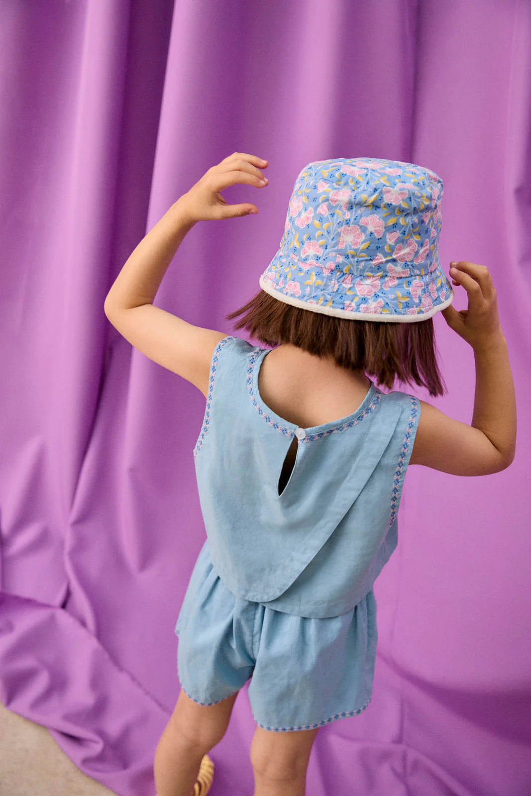 Dieser wunderschöne zweiseitige Hut von Louise Misha besteht zu 100% aus Bio-Baumwolle. Der hübsche Kinderhut hat zwei schöne Blumenmuster, die auf beiden Seiten getragen werden können, somit ist er vielseitig kombinierbar.