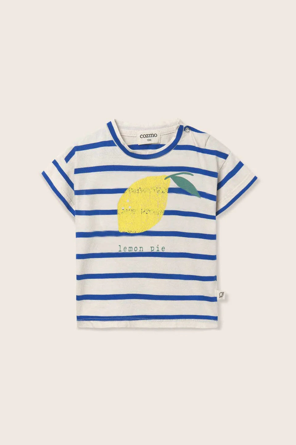 Dieser weiche kurzarm Shirt von Cozmo besteht zu aus 100% Bio-Baumwolle. Das bequeme Babyshirt hat auf der linken Schulter einen Druckknopf um da An- und Ausziehen zu erleichtern. Das Shirt passt wunderbar zur warmen Jahreszeit.
