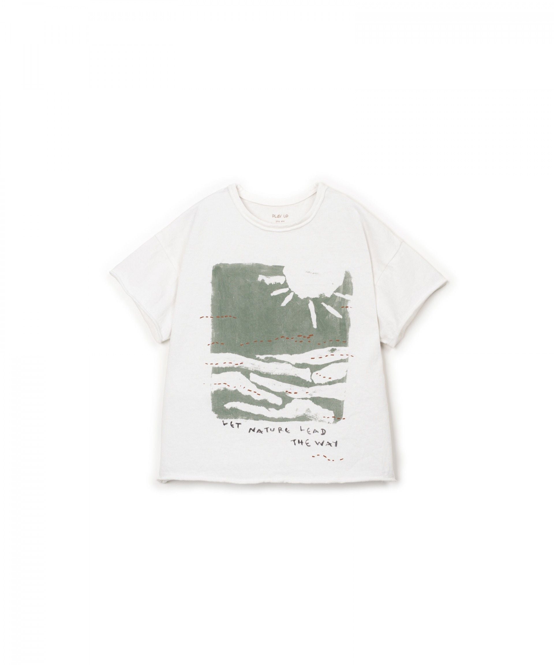 Dieses lässige kurzarm Shirt von Play Up besteht aus Bio-Baumwolle und recycelter Baumwolle. Das bequeme Kindershirt hat eine lässigen Sonnenuntergangprint.